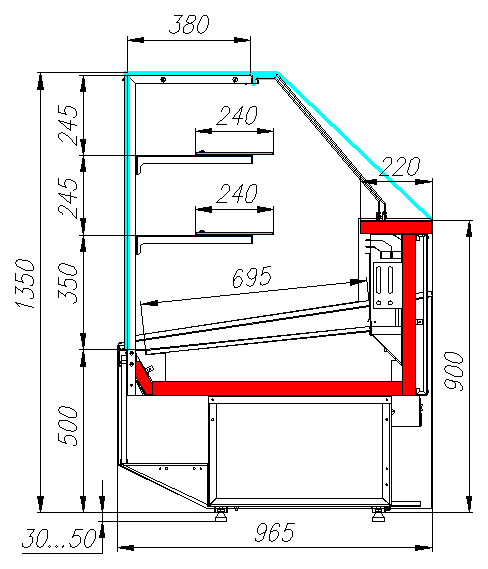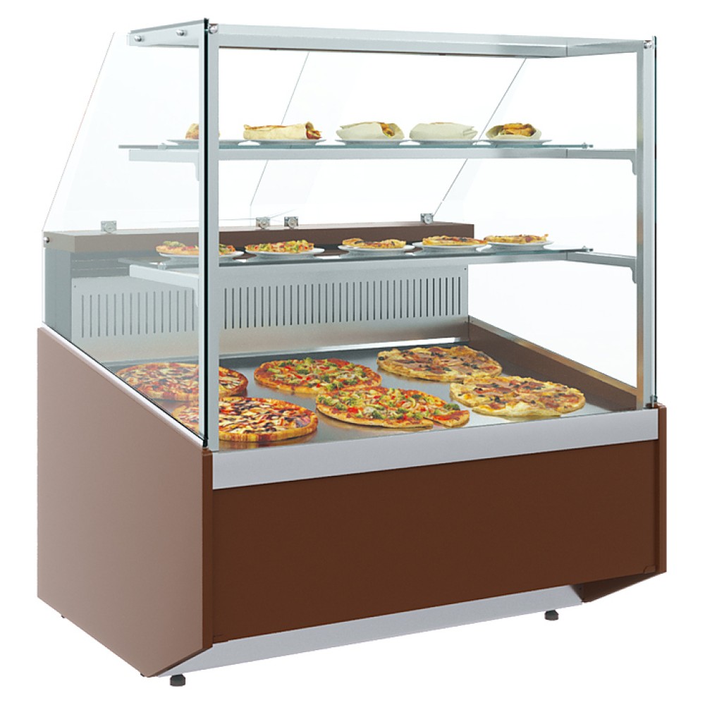 Тепловая витрина Carboma KC95 VH 1,2-1 используется на предприятиях общественного питания и торговли для поддержания в горячем состоянии, кратковременного хранения, демонстрации и продажи выпечки, различных закусок и готовых блюд. Модель оснащена гнутым передним стеклом, 2 полками-решетками, вентиляторами и регулируемыми ножками высотой от 30 до 50 м. Корпус выполнен из стали с ППУ-теплоизоляцией, зона выкладки и столешница - из нержавеющей стали, раздвижные задние створки - из оргстекла, передняя панель - из МДФ, декорированного под дерево.