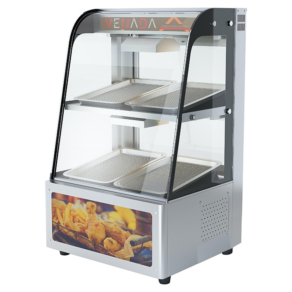 Тепловая витрина Airhot HWR-2 предназначена для демонстрации, подогрева и кратковременного хранения пиццы, булочек, пирогов и различных закусок на предприятиях общественного питания и торговли. Модель оснащена галечным грилем. Корпус выполнен из нержавеющей стали.