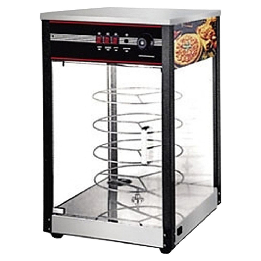 Тепловая витрина Airhot PD предназначена для демонстрации, подогрева и кратковременного хранения пиццы, булочек, пирогов и различных закусок на предприятиях общественного питания и торговли. Модель оснащена функцией поддержания влажности, терморегулятором, индикатором работы, подсветкой и 4 вращающимися полками. Корпус выполнен из окрашенной стали.