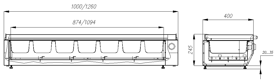 | Высота245 мм | Глубина400 мм | Ширина1260 мм |