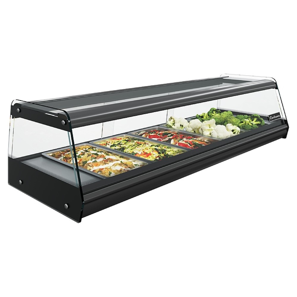 Настольная тепловая витрина Carboma AC38 SH 1,0-1 AZHA используется на предприятиях общественного питания и торговли для поддержания в горячем состоянии, кратковременного хранения, демонстрации и продажи готовых блюд, пиццы, выпечки и других гастрономических изделий. Модель оснащена внешней полкой для хранения продукции при комнатной температуре и размещения принадлежностей. Каркас выполнен из стали с антикоррозийным покрытием, зона выкладки и гастроемкости – из нержавеющей стали, остекление купола – из закаленного стекла высокой степени прозрачности, термоизоляция – из пенополиуретана.