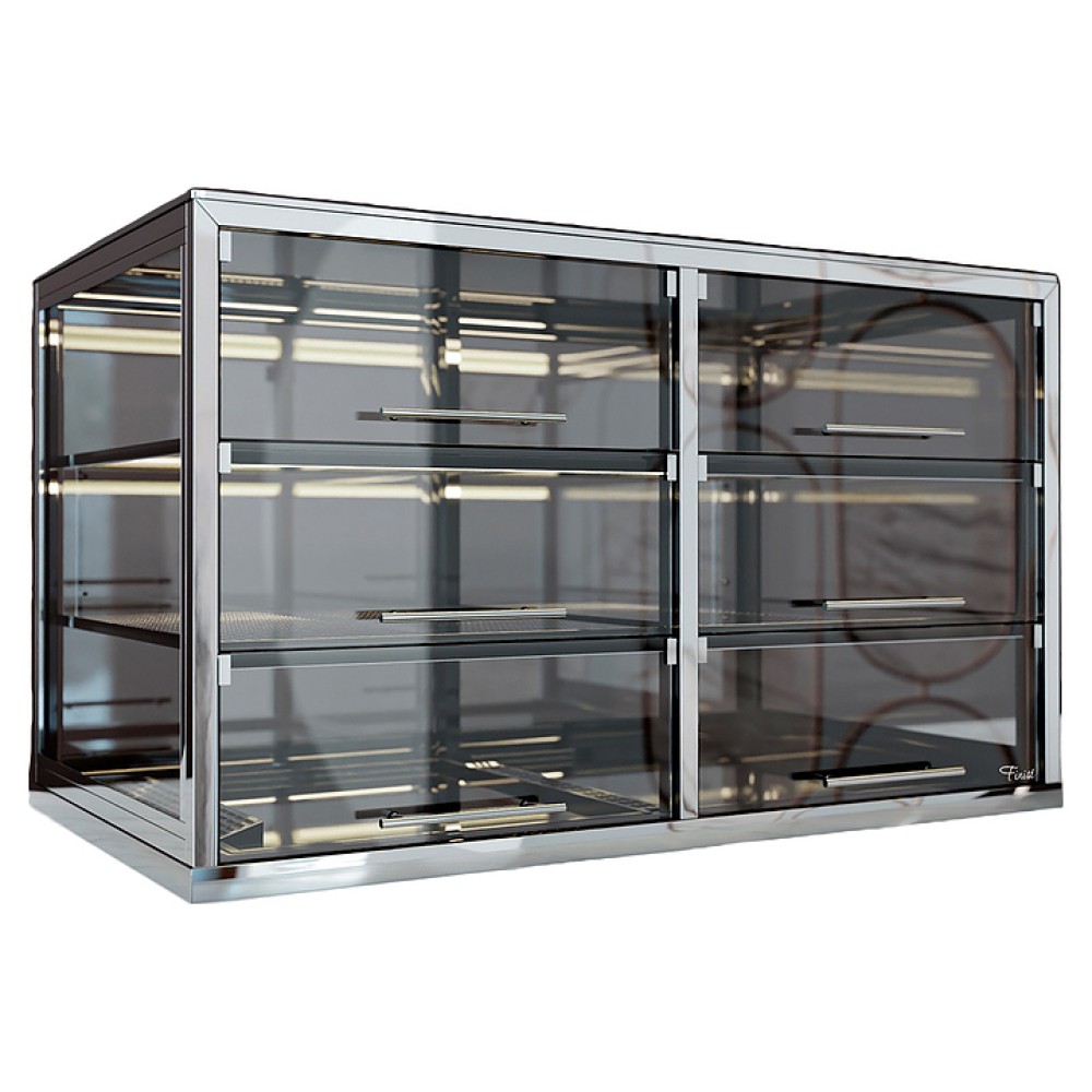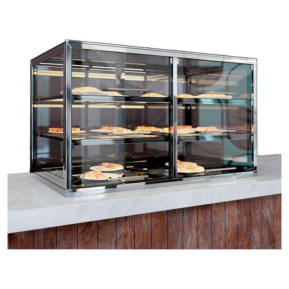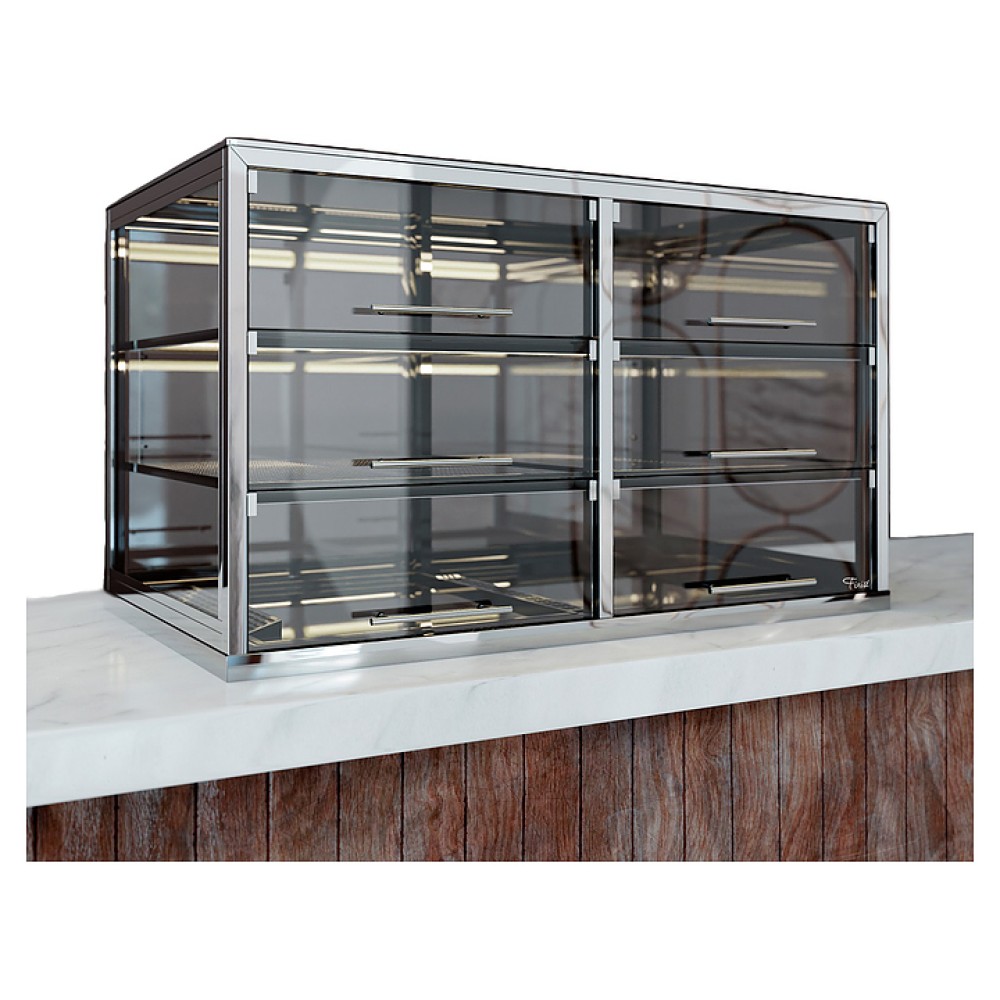 Встраиваемая тепловая витрина Finist ВТВ-3 предназначена для кратковременного хранения и предпродажной демонстрации горячих закусок, кондитерских изделий и выпечки на предприятиях общественного питания и торговли. Модель оснащена прямоугольно ориентированным куполом с остеклением и панелью управления. Выкладка осуществляется на дно и съемные перфорированные полки. Корпус и каркас выполнены из высококачественной нержавеющей стали, остекление – из стекла, откидные створки – из оргстекла.