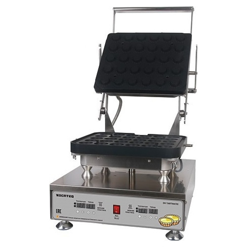 Настольная тарталетница Kocateq DHTartmaticNW используется на предприятиях общественного питания и торговли, в пекарнях и кондитерских для выпечки тарталеток контактным способом из сладкого или пресного песочного, слоеного и дрожжевого теста. Модель оснащена откидной верхней пластиной с ручкой, автоматическим выключателем и удобной русифицированной панелью управления с цифровыми дисплеями и светодиодными лампами индикации. Корпус выполнен из нержавеющей стали AISI 304, подпятники ножек – из пластика.