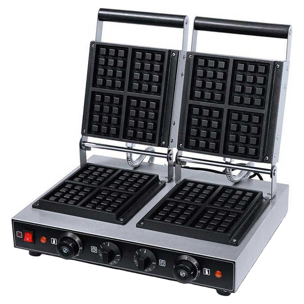 Вафельница Hualian HWB-2S используется на предприятиях пищевой промышленности, общественного питания и торговли для выпечки бельгийских вафель. Модель оснащена электромеханической панелью управления с таймером и регулировкой температуры и устойчивыми ножками. Корпус выполнен из нержавеющей стали, рабочая поверхность с антипригарным покрытием.