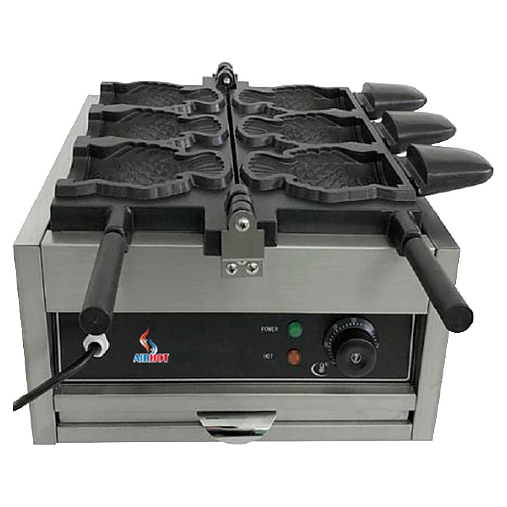 Вафельница Airhot WBF-3 используется на предприятиях общественного питания и торговли для выпекания полых японских вафель тайяки в форме рыбок. Каждая вафля может быть наполнена начинкой. Модель оснащена терморегулятором и электронным таймером. Корпус выполнен из нержавеющей стали, жарочная поверхность - из чугуна с антипригарным покрытием.