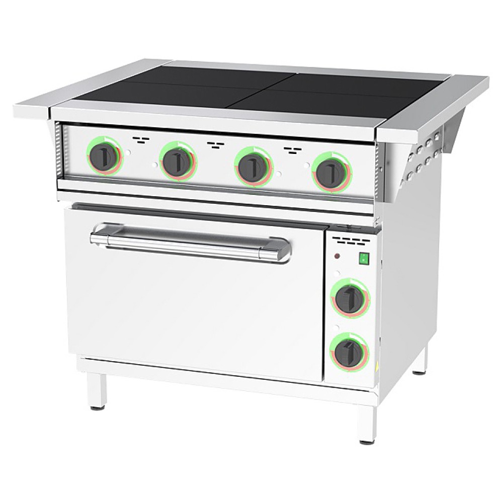 Плита электрическая Gabino S4F-Z предназначена для приготовления различных блюд в наплитной посуде на предприятиях общественного питания и торговли. Модель оснащена регулируемыми по высоте ножками, съемными боковыми полками и сигнальными лампами включения плиты. Лицевая поверхность выполнена из нержавеющей стали, боковая и задняя поверхности - из цинка, духовой шкаф - из углеродистой стали.