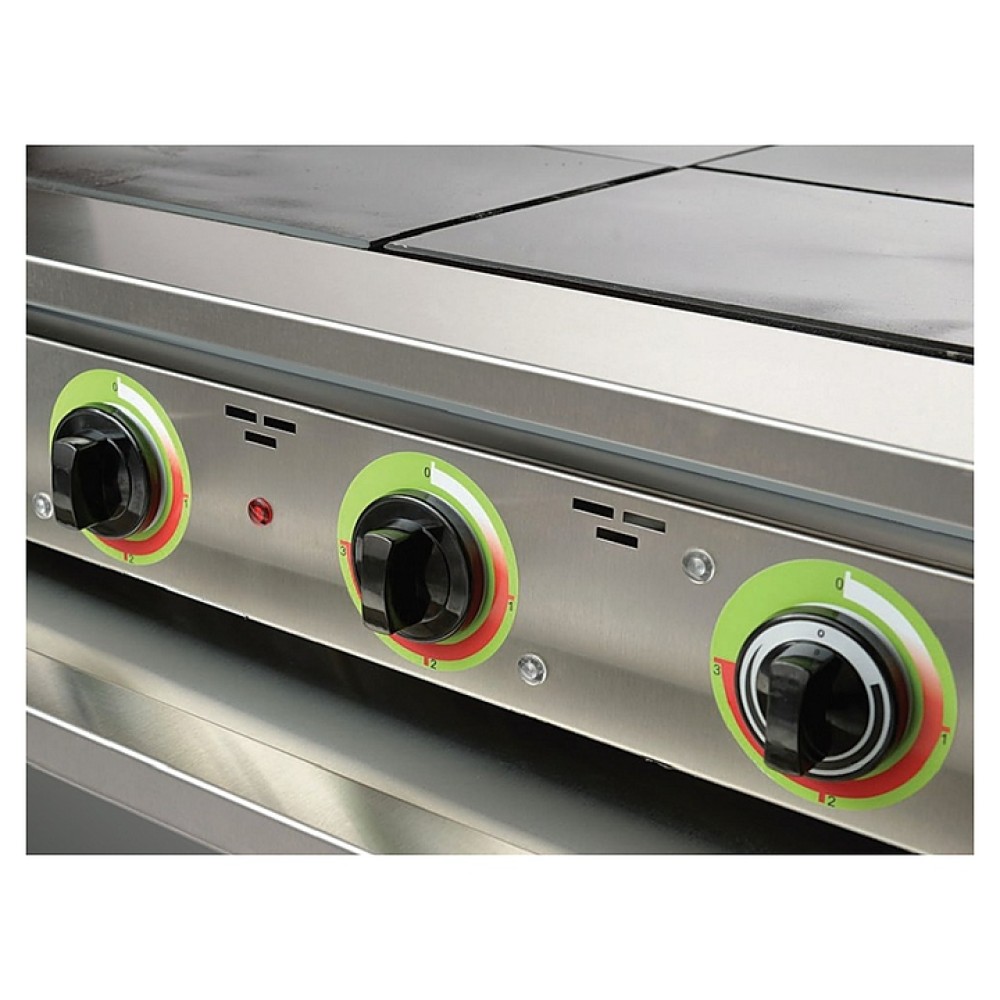 Плита электрическая Gabino S6F предназначена для приготовления различных блюд в наплитной посуде на предприятиях общественного питания и торговли. Модель оснащена регулируемыми по высоте ножками, съемными боковыми полками и сигнальными лампами включения плиты. Боковые стенки выполнены из нержавеющей стали, духовка и противни - из углеродистой стали.