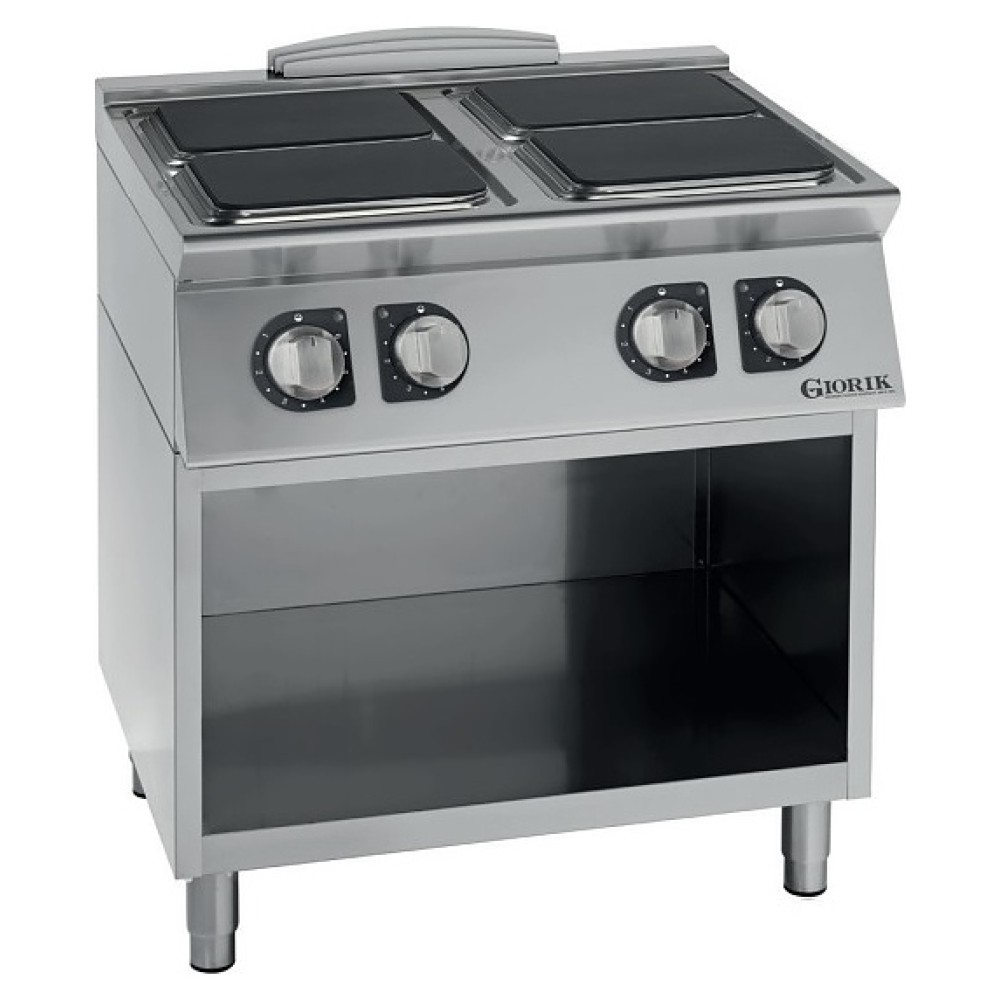 Напольная электрическая плита Giorik Unika 900 CE94QG предназначена для приготовления большого ассортимента блюд в наплитной посуде на предприятиях пищевой промышленности, общественного питания и торговли. Модель оснащена 4 независимыми варочными зонами и расположенной на наклонной фронтальной стенке электромеханической панелью управления. Внешняя облицовка корпуса выполнена из высококачественной нержавеющей стали, рабочая поверхность конфорок – из чугуна.