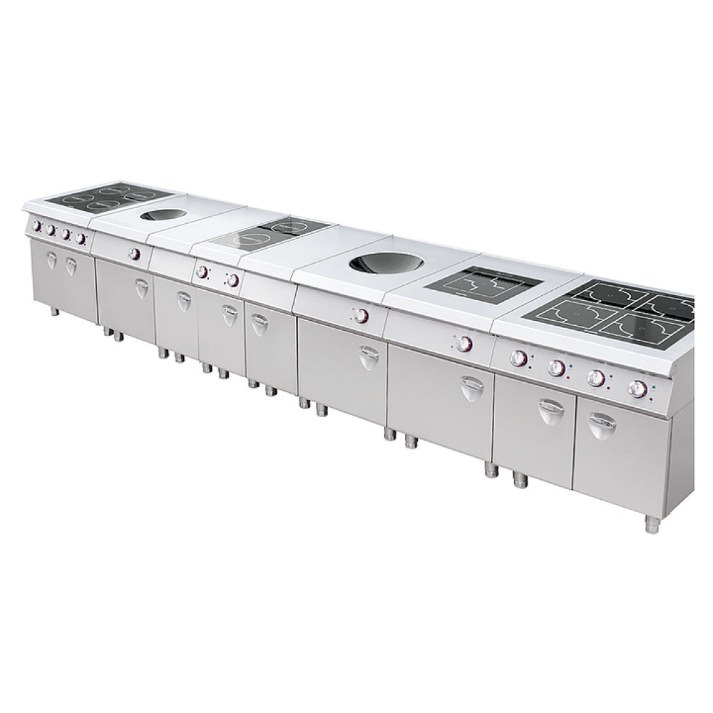 Электрическая плита Kocateq 0M0PE1 класса Medium-Duty предназначена для приготовления широкого спектра блюд в наплитной посуде на предприятиях общественного питания и торговли, в пекарнях и кондитерских. Модель оснащена 7 уровнями мощности, раздельными для каждой конфорки, 4-позиционным регулятором и защитным термостатом. Круглые конфорки выполнены из полированного чугуна, нагревательные элементы - из теплопроводящего сплава, декоративные ручки с накладками - из зеркально полированной нержавеющей стали, поверхности, соприкасающиеся с продуктами, - из нержавеющей стали AISI 304 толщиной 1 мм, дно и задняя стенка - из нержавеющей стали AISI 201 толщиной 1 мм.