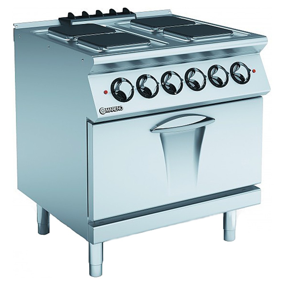 Электрическая плита MARENO NC7FE8EQ предназначена для приготовления широкого спектра блюд и подходит для любых заведений общественного питания. Корпус плиты и дверь духового шкафа изготовлены из нержавеющей стали, что гарантирует долговечность эксплуатации. Прибор оснащен автоматическим термостатом безопасности, 7-позиционным переключателем для регулировки тепла конфорок, 4-позиционным переключателем для духовки и светодиодными индикаторами для проверки правильности работы. Плита отличается простотой в обращении.
