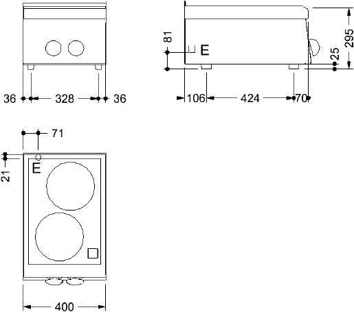 Плита электрическая MARENO V64E предназначена для приготовления широкого спектра блюд, оснащена двумя зонами нагрева диаметром 18 и 22 см и мощностью 1,8 и 2,5 кВт, подходит для применения на предприятиях общественного питания: в кафе, ресторанах, столовых и др. Толщина стеклокерамической рабочей поверхности - 6 мм.