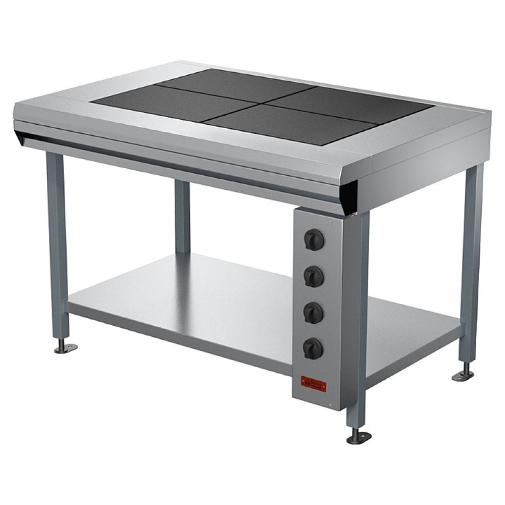 Электрическая плита Проммаш ПЭ-0,48СП используется на предприятиях общественного питания и торговли для приготовления первых, вторых и третьих блюд в наплитной посуде, а также для жарки полуфабрикатов из мяса, рыбы, овощей. Модель оснащена инвентарной полкой. Каркас изготовлен из черного металла с полимерным покрытием, рабочий стол - из нержавеющей стали.