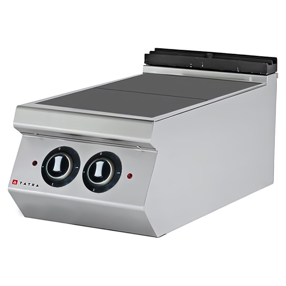 Электрическая плита Tatra TER.49 900 серии предназначена для жарки мяса, птицы, рыбы, овощей и быстрого разогрева полуфабрикатов на предприятиях общественного питания и торговли. Модель оснащена электромеханической панелью управления, 4 низкими чугунными конфорками и регулируемыми ножками. Корпус выполнен из нержавеющей стали.