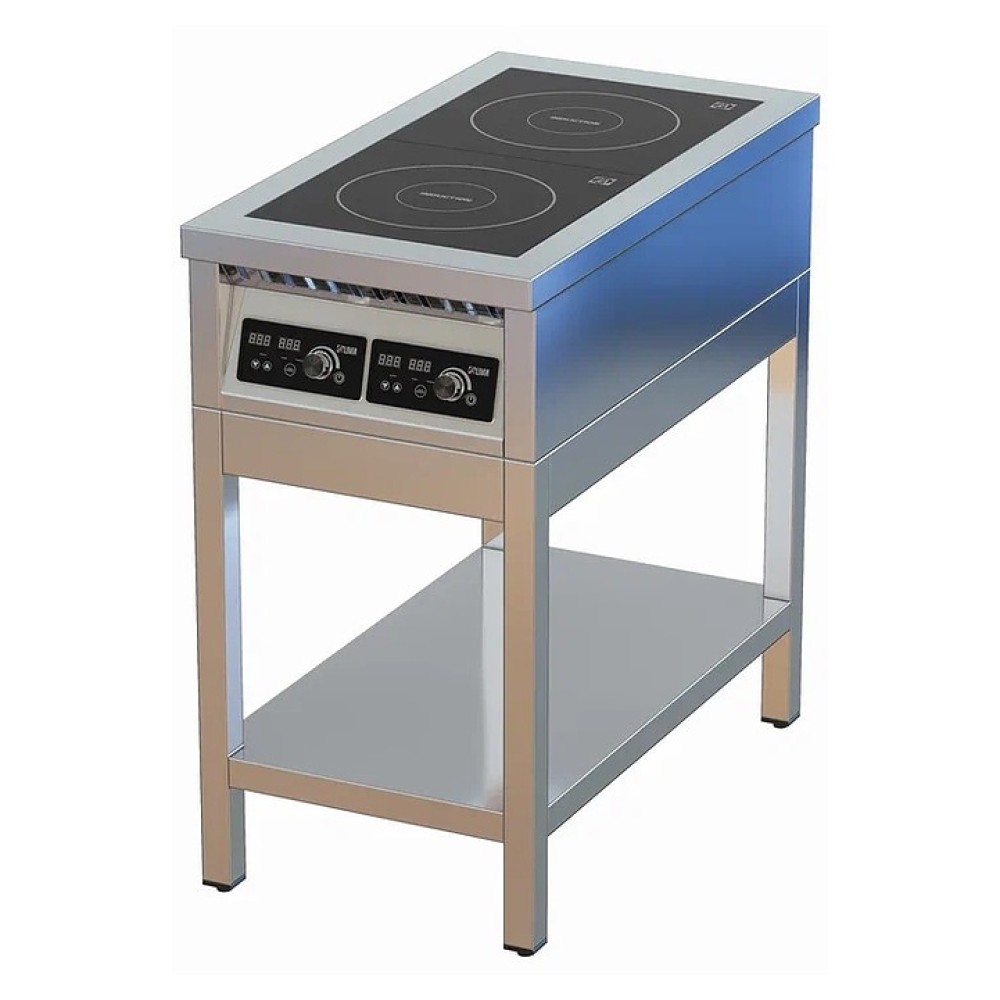 Индукционная плита ЦМИ ПИ-2(1х5) предназначена для приготовления различных блюд в наплитной посуде на предприятиях общественного питания и торговли. Нагрев рабочей поверхности осуществляется моментально, вследствие чего затрачивается меньшее количество электроэнергии. Корпус, каркас подставки и полка выполнены из нержавеющей стали AISI 430 толщиной 0,8 мм, верхний контур - из нержавеющей стали AISI 430 толщиной 1,5 мм, ножки - из нержавеющей трубы 40х40х1,2 мм, конфорка - из жаропрочного стекла толщиной 5 мм.
