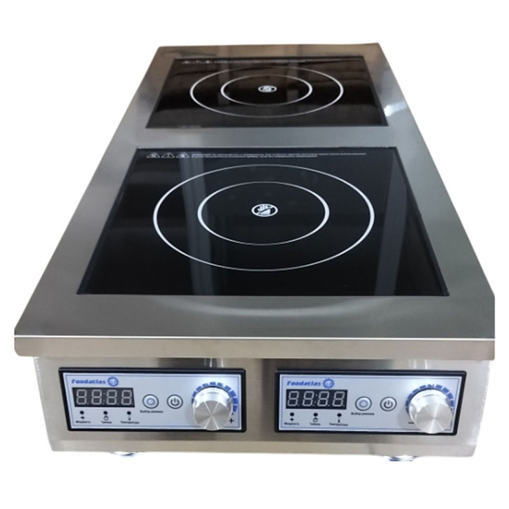 Индукционная плита Foodatlas FA-35002VK Eco предназначена для приготовления блюд в наплитной посуде на предприятиях общественного питания. Модель оснащена 2 конфорками, панелью управления с кнопками и индикаторным табло, отображающим текущие работы плиты. Индукционная технология обеспечивает передачу до 90% энергии непосредственно посуде, что значительно экономит электроэнергию по сравнению с традиционными плитами, отсутствие открытого огня и минимальный нагрев окружающей среды делают приготовление пищи более безопасным и комфортным. Рабочая поверхность выполнена из стеклокерамики, корпус - из нержавеющей стали.