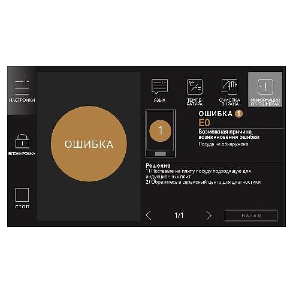 | Количество конфорок1 | Количество мест1 | Конфоркаиндукционная |