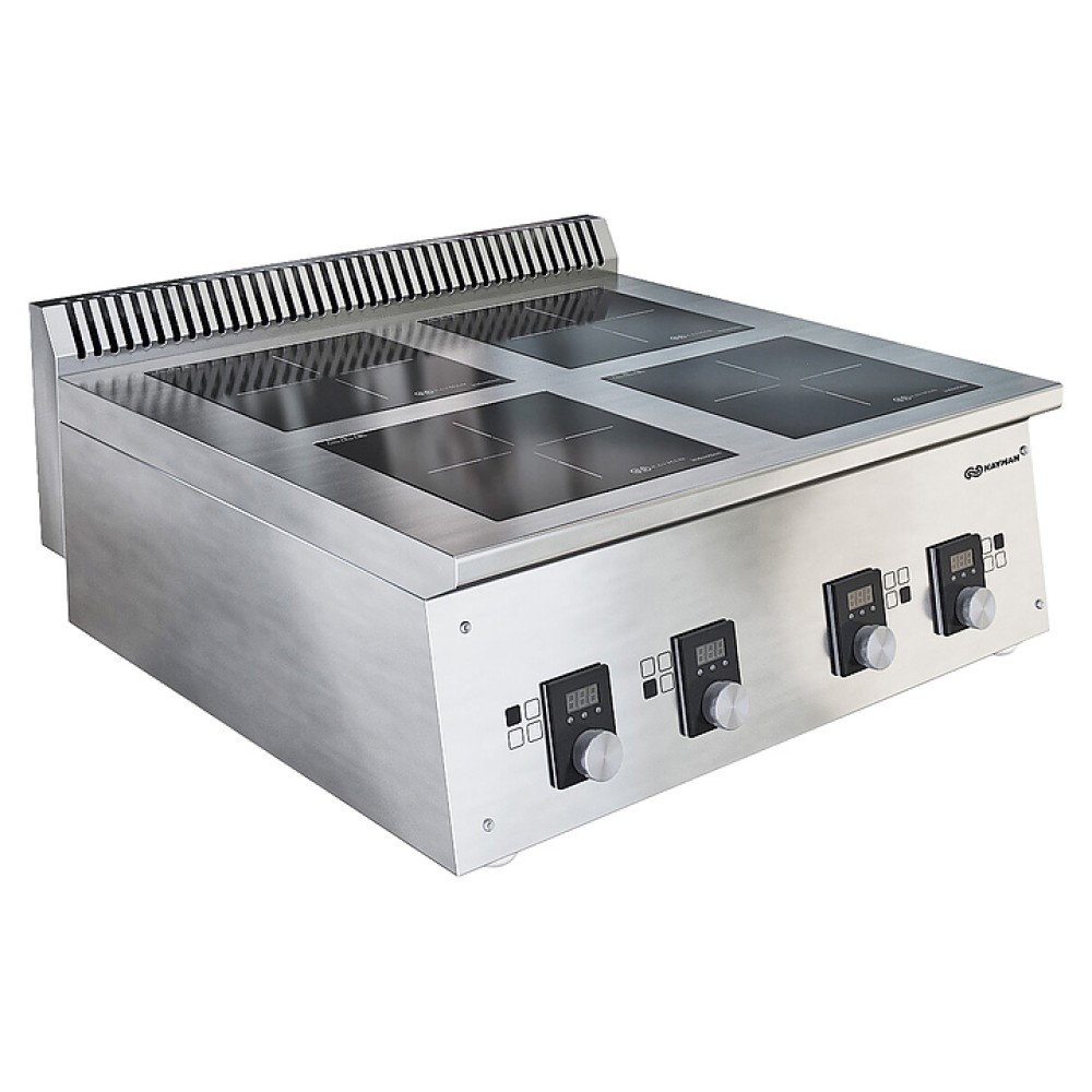 Индукционная плита KAYMAN ПИ-4-12 предназначена для приготовления приготовления первых, вторых и третьих блюд в наплитной посуде на предприятиях общественного питания и торговли. Модель оснащена бортом. Корпус выполнен из нержавеющей стали AISI 430, столешница - из нержавеющей стали AISI 304.