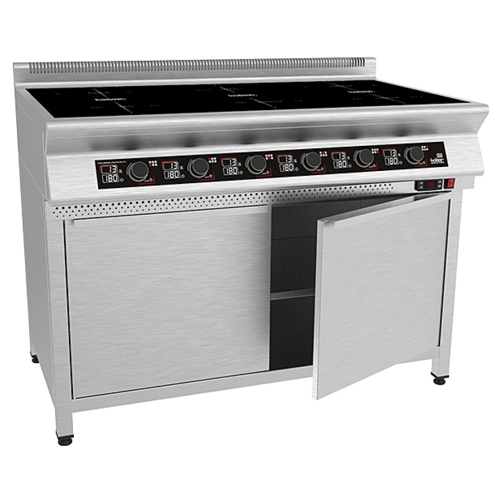 Индукционная плита Кобор I7-6SТ серии 700 предназначена для приготовления различных блюд в наплитной посуде на предприятиях общественного питания и торговли. Нагрев поверхности осуществляется почти мгновенно, а выделяемое тепло генерируется только на посуде, сама же плита нагревается незначительно, что позволяет избежать ожогов и потери тепла. Корпус выполнен из нержавеющей стали AISI 304, варочная панель - из монолитной высокопрочной стеклокерамики.