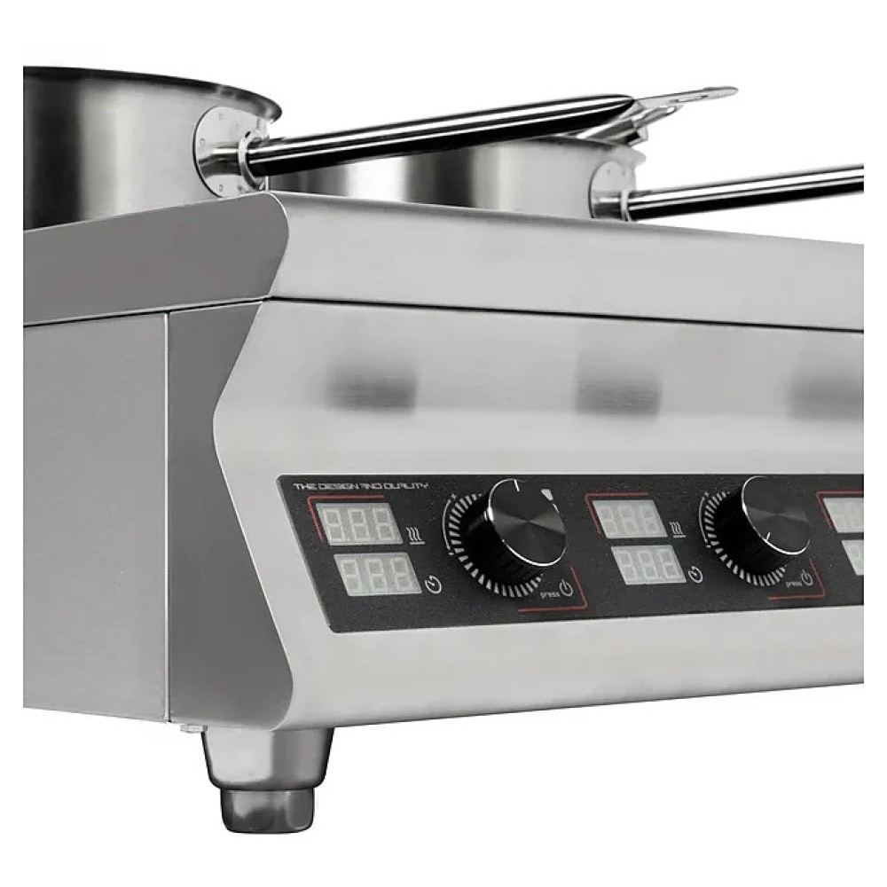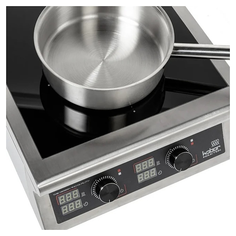Индукционная плита Кобор I9-2T серии 900 предназначена для приготовления различных блюд в наплитной посуде на предприятиях общественного питания и торговли. Нагрев поверхности осуществляется почти мгновенно, а выделяемое тепло генерируется только на посуде, сама же плита нагревается незначительно, что позволяет избежать ожогов и потери тепла. Корпус выполнен из нержавеющей стали AISI 304, варочная панель - из монолитной высокопрочной стеклокерамики.