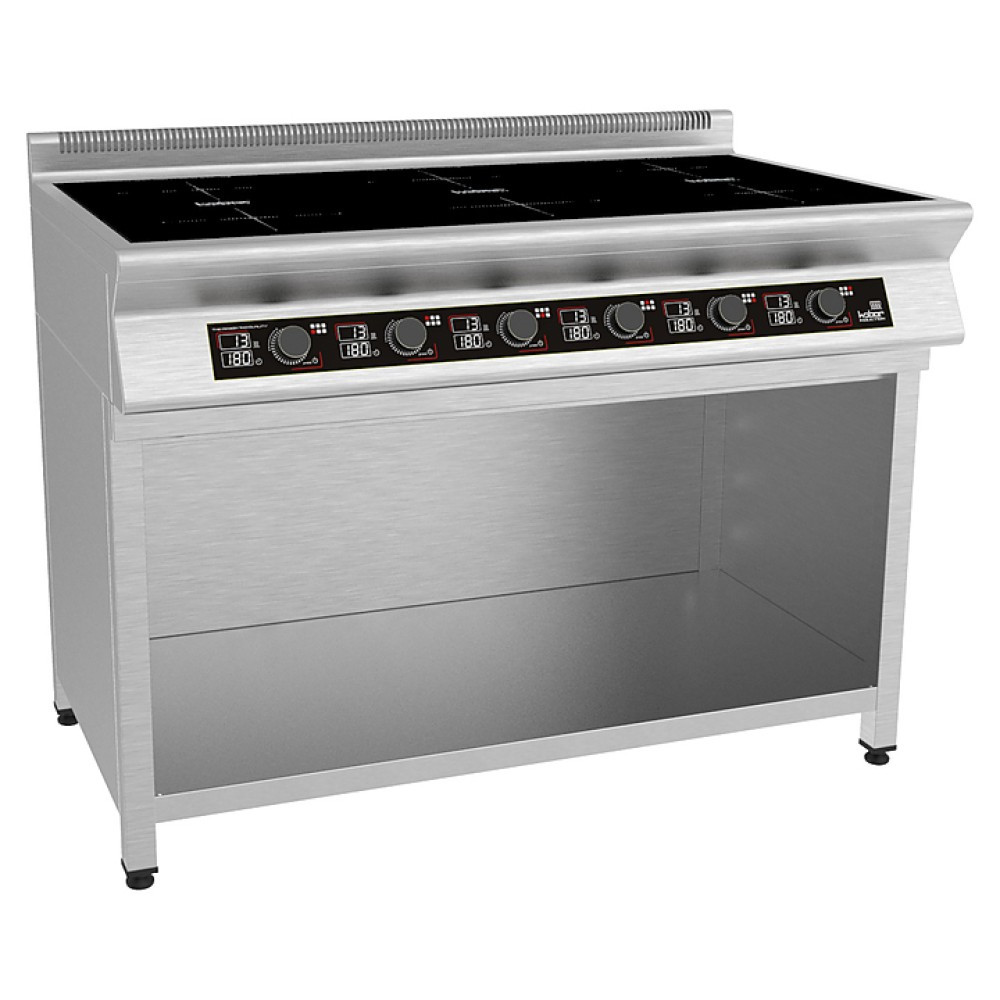 Индукционная плита Кобор I9-6S1 серии 900 предназначена для приготовления различных блюд в наплитной посуде на предприятиях общественного питания и торговли. Нагрев поверхности осуществляется почти мгновенно, а выделяемое тепло генерируется только на посуде, сама же плита нагревается незначительно, что позволяет избежать ожогов и потери тепла. Корпус выполнен из нержавеющей стали AISI 304, варочная панель - из монолитной высокопрочной стеклокерамики.