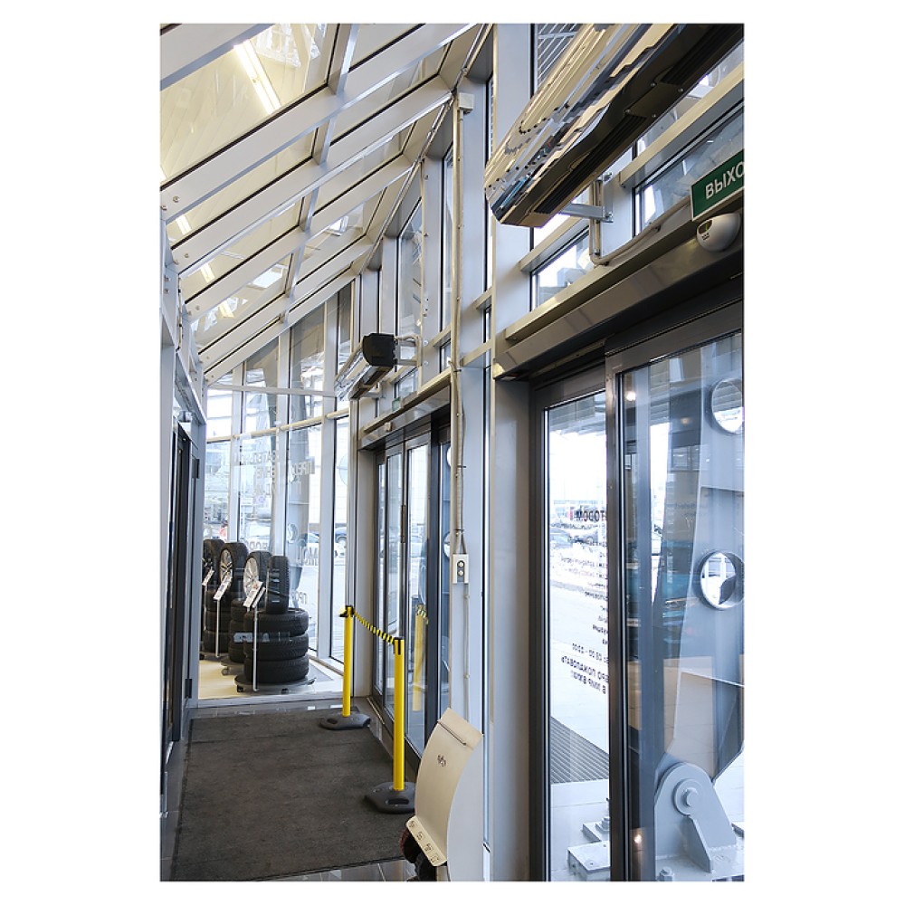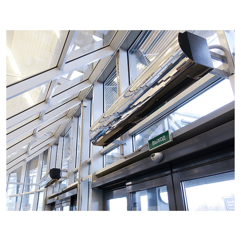 Воздушная завеса Тепломаш КЭВ-18П3043E серии 300 Бриллиант предназначена для защиты от внешнего притока холодного или теплого воздуха, пыли, насекомых и неприятных запахов путем установки в дверных проемах жилых, торговых и административных помещений, гостиниц, медицинских и общеобразовательных учреждений. Модель оснащена 2 блоками диаметральных (тангенциальных) вентиляторов с электродвигателем, воздухозаборной и воздуховыпускными решетками. Корпус прибора выполнен из оцинкованной стали с антикоррозийным покрытием порошковой краской, лицевая панель – из нержавеющей стали с глянцевой серебристой поверхностью и декоративными гранями, корпусы пульта и выносной панели – из ударопрочного белого пластика.