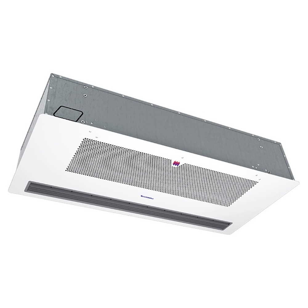 Воздушная завеса Тепломаш КЭВ-6П3271E серии 300 Потолочная предназначена для защиты от внешнего притока холодного или теплого воздуха, пыли, насекомых и неприятных запахов путем установки в дверных проемах жилых, торговых и административных помещений, гостиниц, медицинских и общеобразовательных учреждений. Модель оснащена блоком диаметральных (тангенциальных) вентиляторов с электродвигателем, воздухозаборной и воздуховыпускной решетками на лицевой панели. Корпус выполнен из оцинкованной стали, лицевая панель – из стали с антикоррозийным покрытием порошковой краской светло-серого оттенка (RAL 7035), корпусы пульта и выносной панели – из ударопрочного белого пластика.