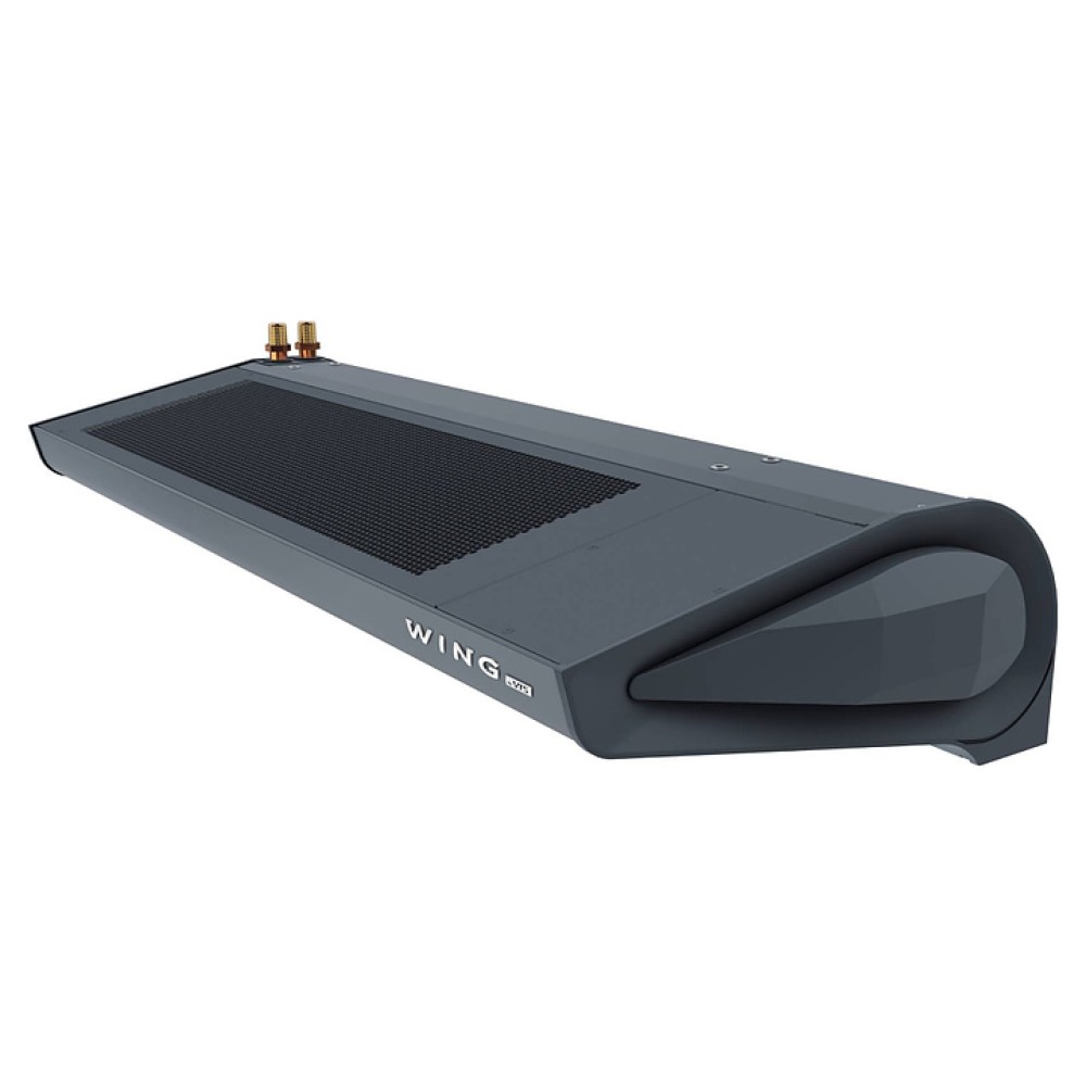 Воздушная завеса WING II W100 EC предназначена для защиты от внешнего притока холодного или теплого воздуха, пыли и неприятных запахов путем установки в дверных проемах жилых, торговых, административных и складских помещений, автосервисов, гостиниц, медицинских и общеобразовательных учреждений. Модель оснащена воздухозабоной решеткой сверху и термовыводящими направляющими снизу, а также дополнительными воздушными отверстиями и стилизованными под ювелирную огранку крышками на боковых панелях. Обтекаемый корпус в форме крыла выполнен из высококачественной оцинкованной стали с антикоррозийным покрытием порошковой краской оттенка серый антрацит, трубки теплообменника – из меди.