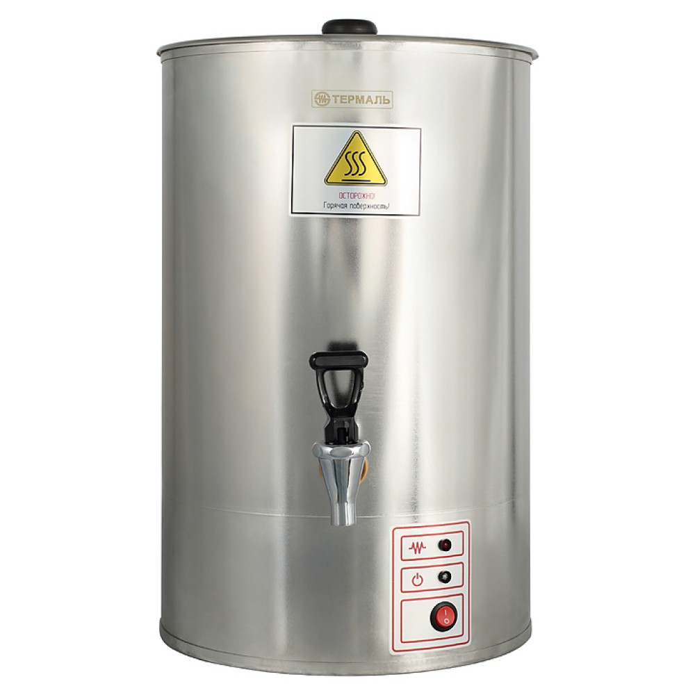 Кипятильник Термаль КЭНД 100-03 предназначен для подогрева воды на предприятиях общественного питания и торговли, в детских и медико-санитарных учреждениях. Оснащен надёжным блоком автоматики. В кипятильном сосуде присутствуют трубки, защищающие датчики от водяного ключа. В приборе есть 2 рабочие полости: кипятильный сосуд и сборник кипятка.