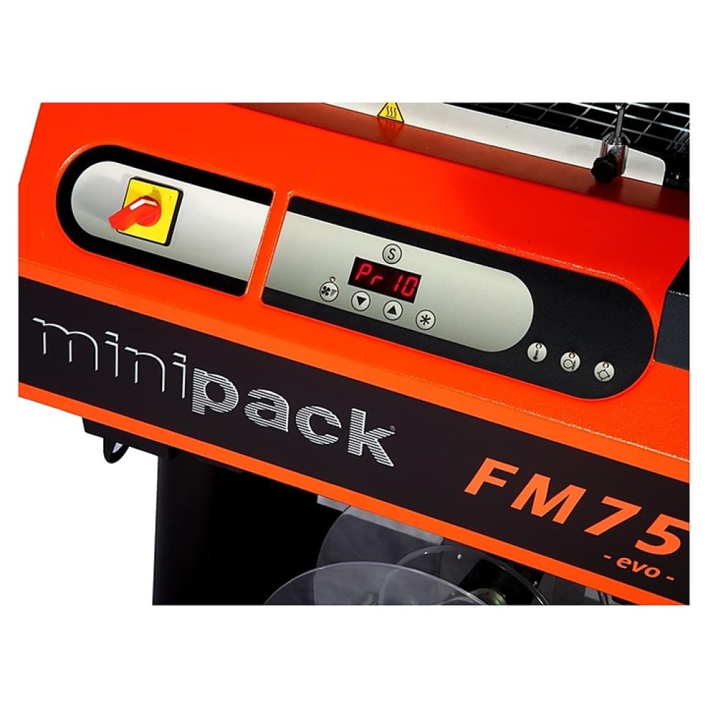 Термоусадочная машина Minipack-Torre FM 75 EVO используется на промышленных и торговых предприятиях для упаковки компакт-дисков, канцелярских и прочих товаров для офиса, продуктов питания полиолефиновой (ПОФ) или поливинилхлоридной (ПВХ) пленкой. Модель оснащена удобной панелью управления и прозрачной крышкой камеры для контроля процесса упаковки.