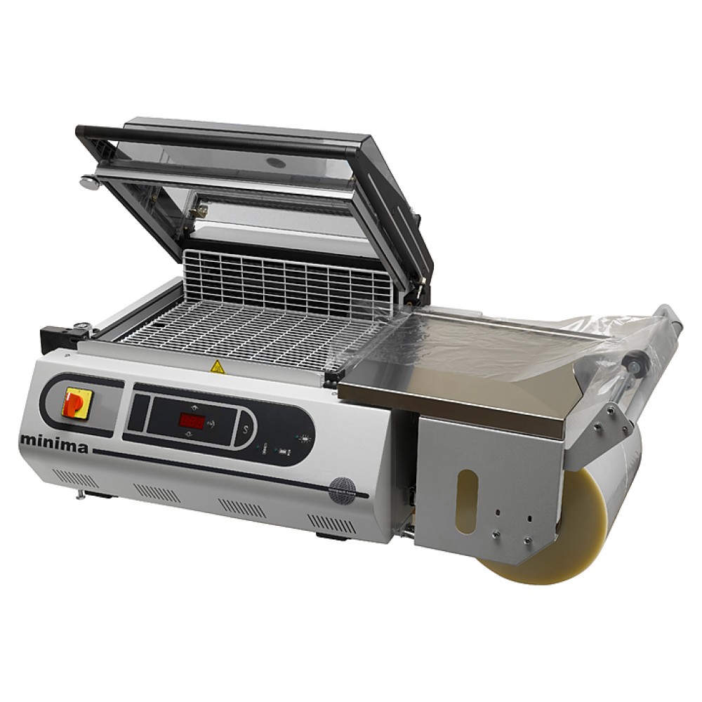 Термоусадочная машина Minipack-Torre Minima EVO используется на промышленных и торговых предприятиях для упаковки компакт-дисков, канцелярских и прочих товаров для офиса, продуктов питания полиолефиновой (ПОФ) или поливинилхлоридной (ПВХ) пленкой. Модель оснащена удобной панелью управления и прозрачной крышкой камеры для контроля процесса упаковки.