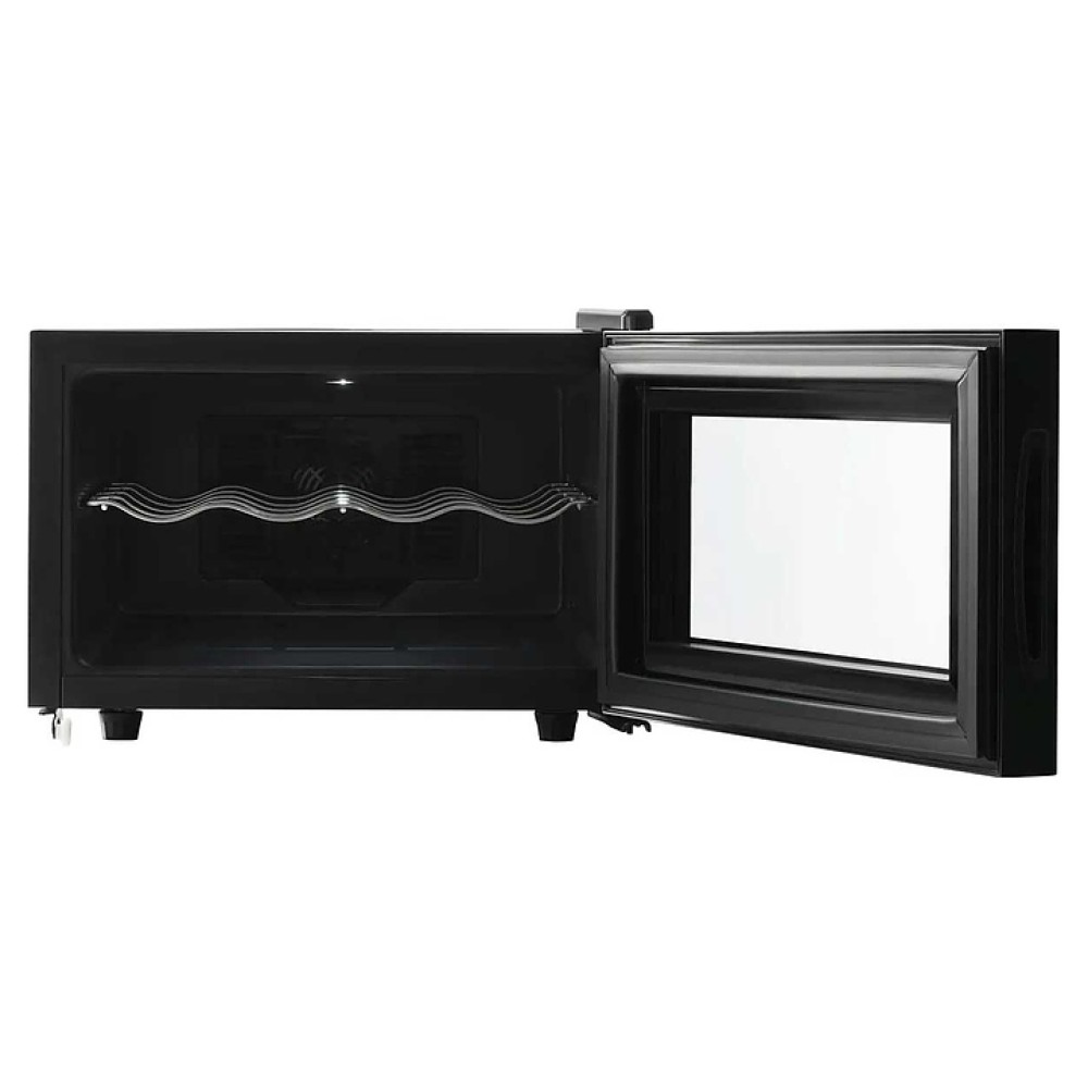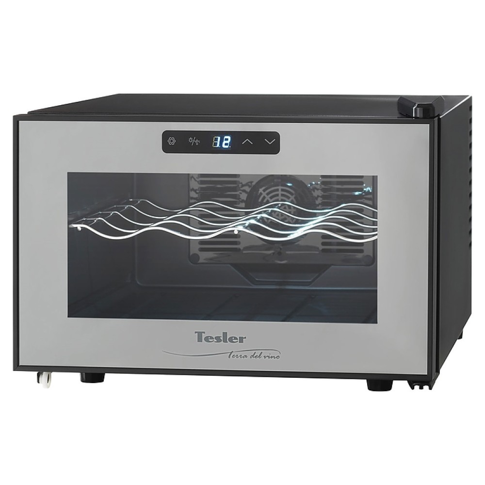 Винный шкаф TESLER WCH-082 предназначен для хранения при оптимальных условиях бутилированного вина различных сортов в барах, ресторанах, специализированных магазинах, подсобных складских помещениях, а также домашних условиях. Модель оснащена монотемпературной холодильной камерой c интегрированными направляющими для полки, правосторонней распашной дверью с обзорным остеклением, кабелем питания, расположенной на фасаде двери электронной панелью управления с сенсорными функциональными клавишами и цифровым жидкокристаллическим дисплеем с голубой подсветкой индикации. Корпус выполнен из металла с матовым антикоррозийным покрытием черного цвета, фронт рамы двери с серебристой поверхностью и полным фронтальным остеклением без винтового крепежа, остекление – из закаленного стекла, внутренняя облицовка камеры черного цвета, полка – из металла.
