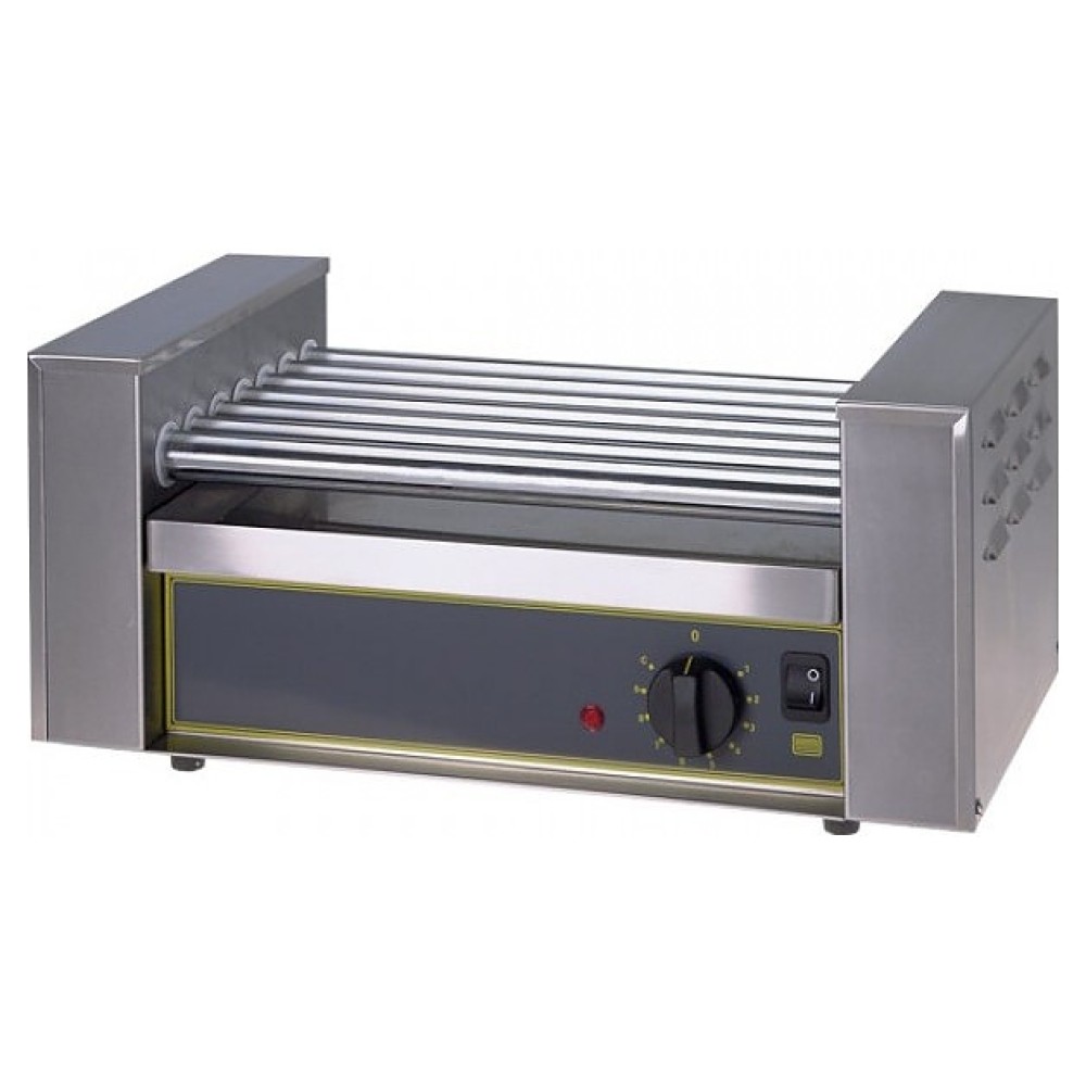 Роликовый гриль Roller Grill RG 7 B предназначен для обжаривания мясных и рыбных батончиков, сарделек и сосисок на предприятиях общественного питания и торговли. Модель оснащена 7 хромированными роликами, выдвижным поддоном для сбора жира, электромеханическим управлением, терморегулятором, индикатором нагрева и нескользящими ножками. Постоянное вращение роликов способствует прожариванию продуктов со всех сторон. Корпус выполнен из нержавеющей стали.