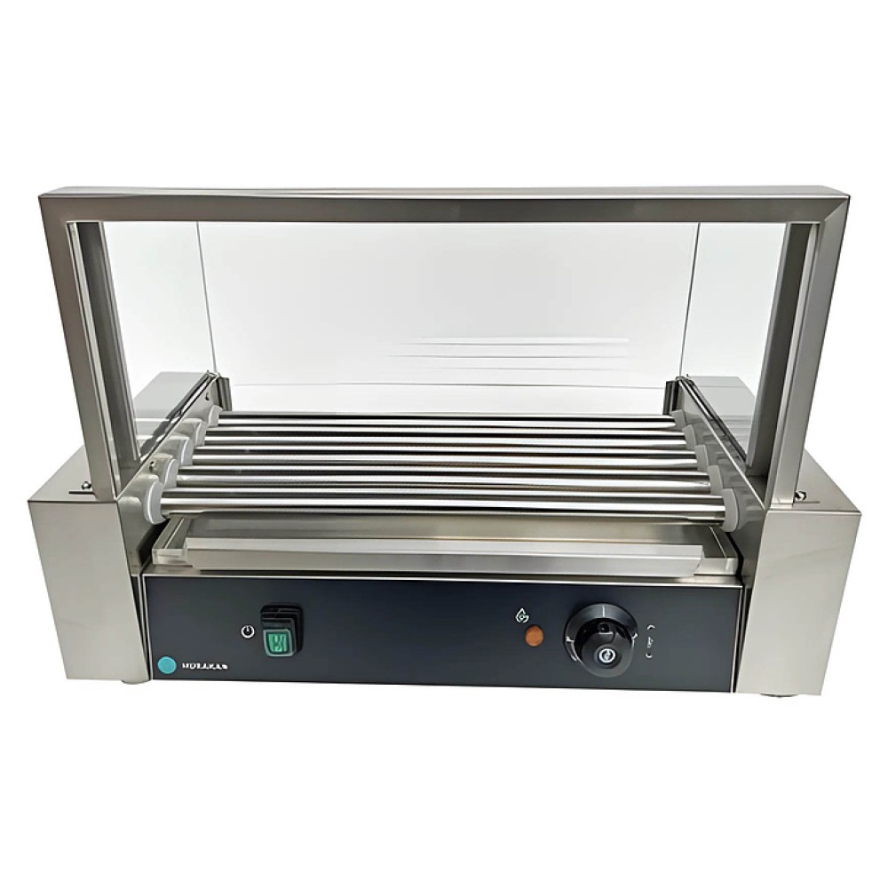 Роликовый гриль Hurakan HKN-GW5M предназначен для обжаривания сосисок и сарделек, мясных и рыбных рулетов на предприятиях общественного питания и торговли. Модель оснащена защитным экраном. Корпус и ролики выполнены из нержавеющей стали.