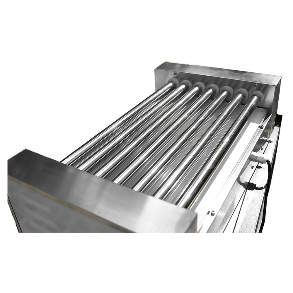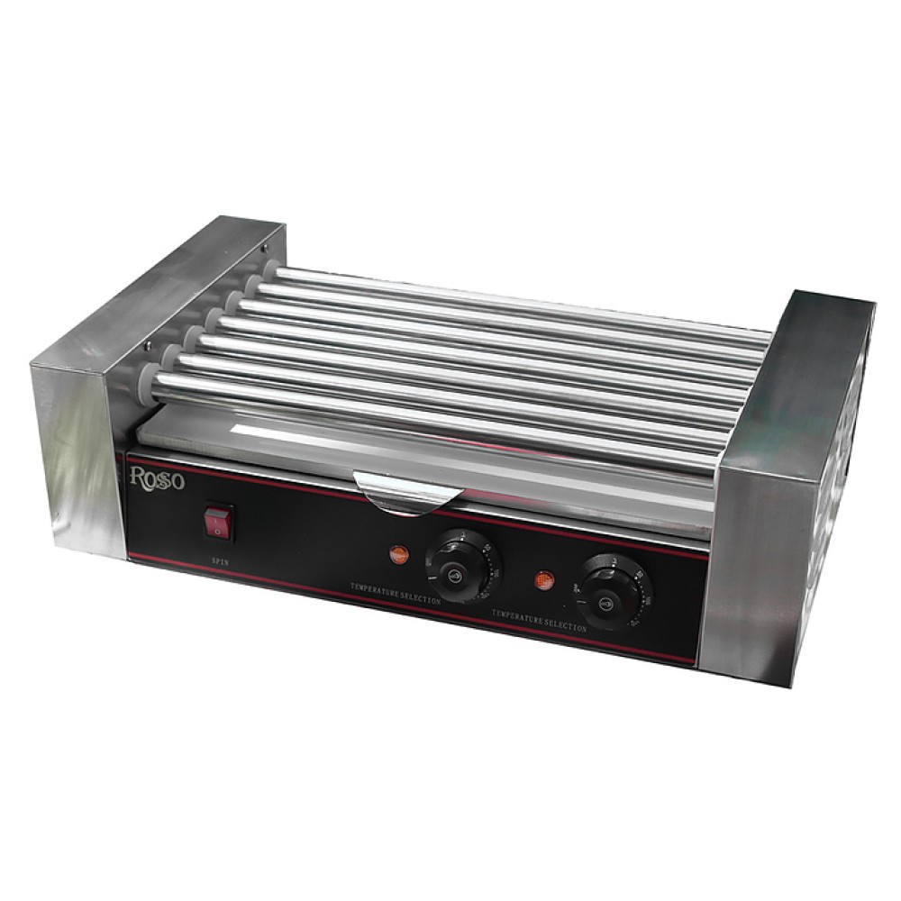 Настольный роликовый гриль Rosso HHD-07 предназначен для обжаривания, подогрева и поддержания в горячем виде сосисок, сарделек, рыбных палочек, наггетсов и аналогичной продукции на предприятиях общественного питания и торговли. Модель оснащена рабочей поверхностью в виде вращающихся роликов и электромеханической панелью управления. Корпус и ролики выполнены из нержавеющей стали, ролики с антипригарным тефлоновым покрытием.