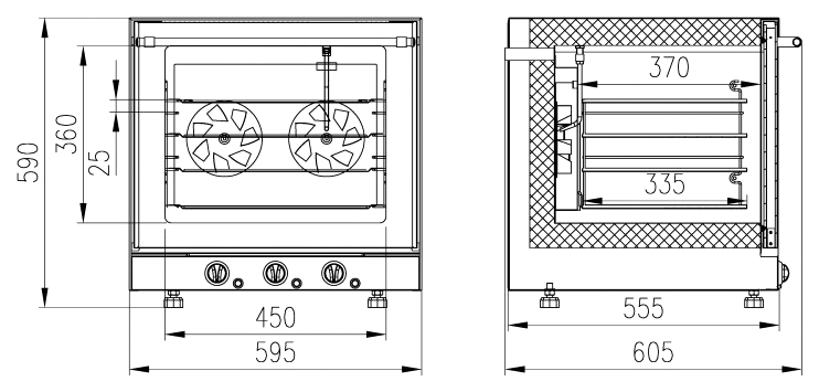 | Тип и размер гастроемкостей и противней | уменьшенный, 435x330 мм |