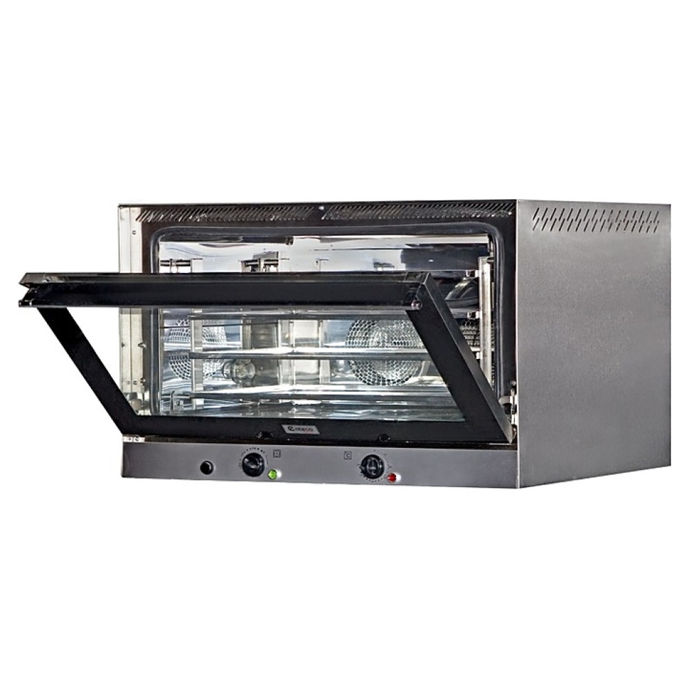 Конвекционная печь ENTECO MACTERГН 41 ПАР предназначена для выпечки и разогрева кондитерских и хлебобулочных изделий, термической обработки продуктов при консервации, а также приготовления различных блюд на предприятиях общественного питания и торговли. Модель оснащена откидной дверью с горизонтальной рукояткой, панелью управления с круговыми регуляторами и светодиодными индикаторами. Внешнее и внутреннее остекление двери выполнено из жаропрочного закаленного стекла, уплотнение – из высококачественной термостойкой резины.