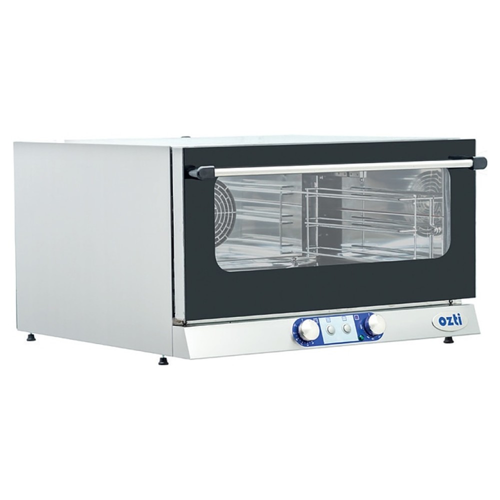 Конвекционная печь OZTI OKFBE 40603 предназначена для выпечки хлебобулочных и кондитерских изделий, а также приготовления и разогрева различных блюд из мяса, рыбы и овощей на предприятиях пищевой промышленности, общественного питания и торговли. Модель оснащена камерой с вентилятором в задней стенке, направляющими для противней, откидной дверью с длинной горизонтальной рукояткой и наклонной электромеханической панелью управления. Корпус, внутренняя облицовка камеры и вентилятор выполнены из высококачественной нержавеющей стали, остекление двери – из термостойкого закаленного стекла.