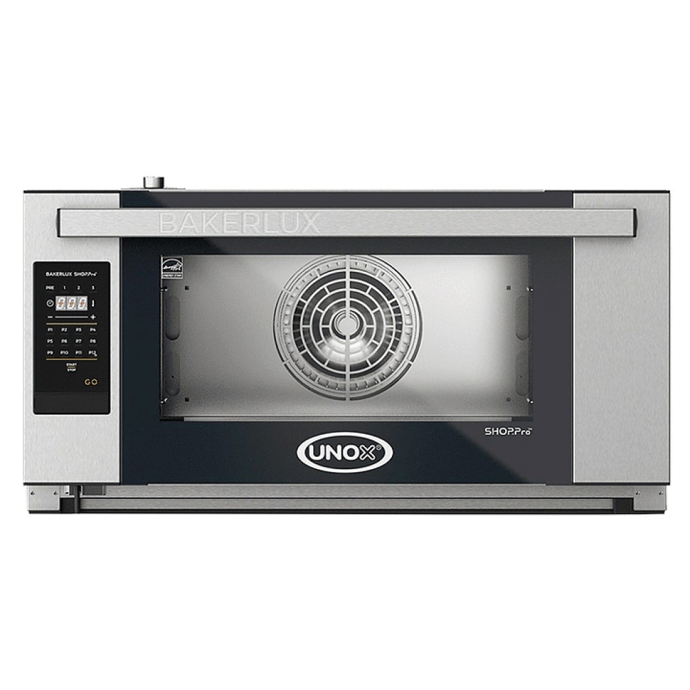 Печь конвекционная UNOX XEFR-03EU-EGDN Elena BAKERLUX SHOP.Pro предназначена для допекания замороженных изделий, выпечки хлебобулочных и кондитерских изделий полного цикла на предприятиях общественного питания и торговли, в пекарнях и кондитерских. Модель оснащена электронным управлением с сенсорным ЖК-дисплеем диагональю 2,4" и светодиодным овещением камеры. Камера выполнена из нержавеющей стали AISI 304, опоры для противней - из хромированной стали.
