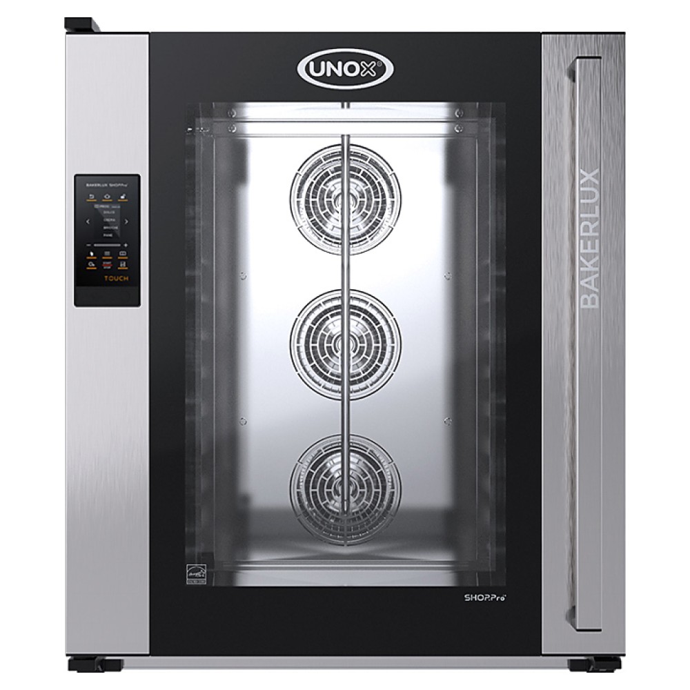 Печь конвекционная UNOX XEFT-10EU-ETRV серии BakerLux Shop.Pro предназначена для приготовления различных блюд, выпечки хлебобулочных и кондитерских изделий на предприятиях общественного питания и торговли, в пекарнях и кондитерских. Модель оснащена электронным управлением, светодиодной подсветкой и L-образными направляющими. Легко открывающееся внутреннее стекло облегчают чистку и обеспечивает максимальную гигиену. Камера выполнена из нержавеющей стали, направляющие - из гнутого стального листа.