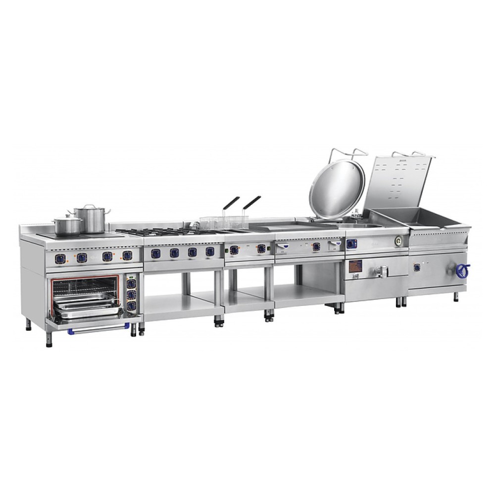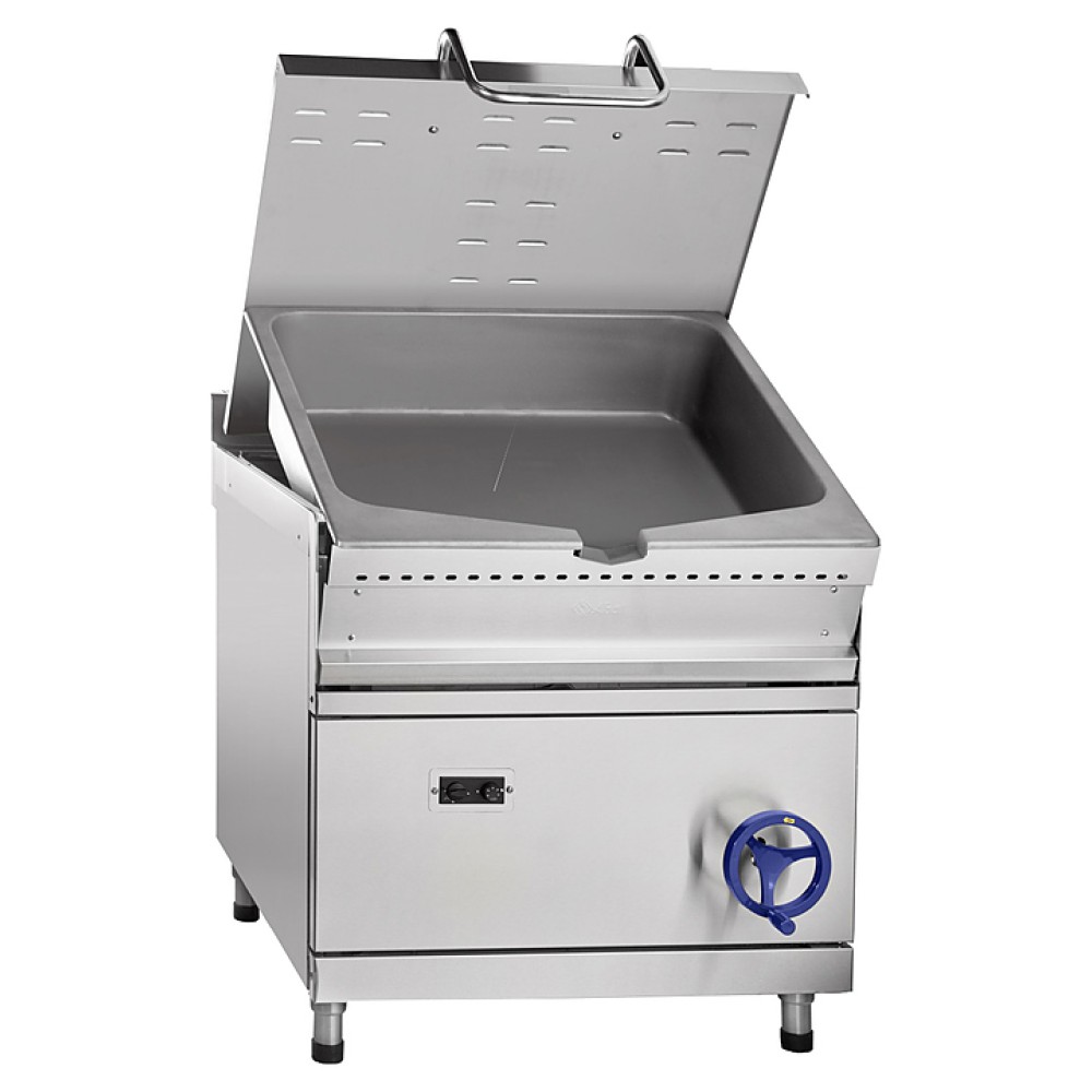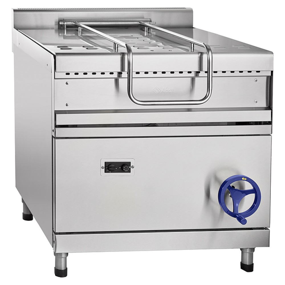 Опрокидывающаяся сковорода Abat ГСК-90-0,47-70 предназначена для приготовления мяса, рыбы, овощей и других продуктов методом жарки, тушения, припускания, пассерования, приготовления на пару и во фритюре на предприятиях общественного питания и торговли. Модель оснащена цельнотянутой сварной чашей, газ-контролем, пьезорозжигом, фиксацией ручки крышки в любом положении и регулируемыми по высоте ножками.