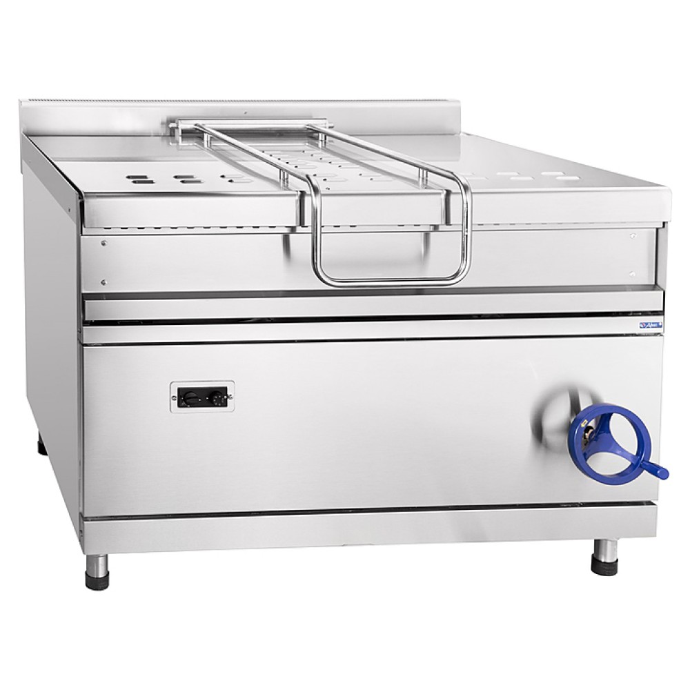 Опрокидывающаяся сковорода Abat ГСК-90-0,67-150 предназначена для приготовления мяса, рыбы, овощей и других продуктов методом жарки, тушения, припускания, пассерования, приготовления на пару и во фритюре на предприятиях общественного питания и торговли. Модель оснащена цельнотянутой сварной чашей, газ-контролем, пьезорозжигом, фиксацией ручки крышки в любом положении и регулируемыми по высоте ножками.