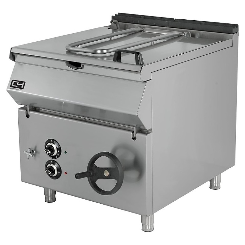 Электрическая опрокидывающаяся сковорода Empero EMP.PLS.DTE.120 серии 900+ предназначена для приготовления большого ассортимента блюд на предприятиях пищевой промышленности, общественного питания и торговли. Модель оснащена емкостью с прямоугольной крышкой, трубчатыми электронагревательными элементами (ТЭНами) и расположенной на фронтальной стенке электромеханической панелью управления с 2 поворотными переключателями. Корпус и емкость выполнены из высококачественной нержавеющей стали.