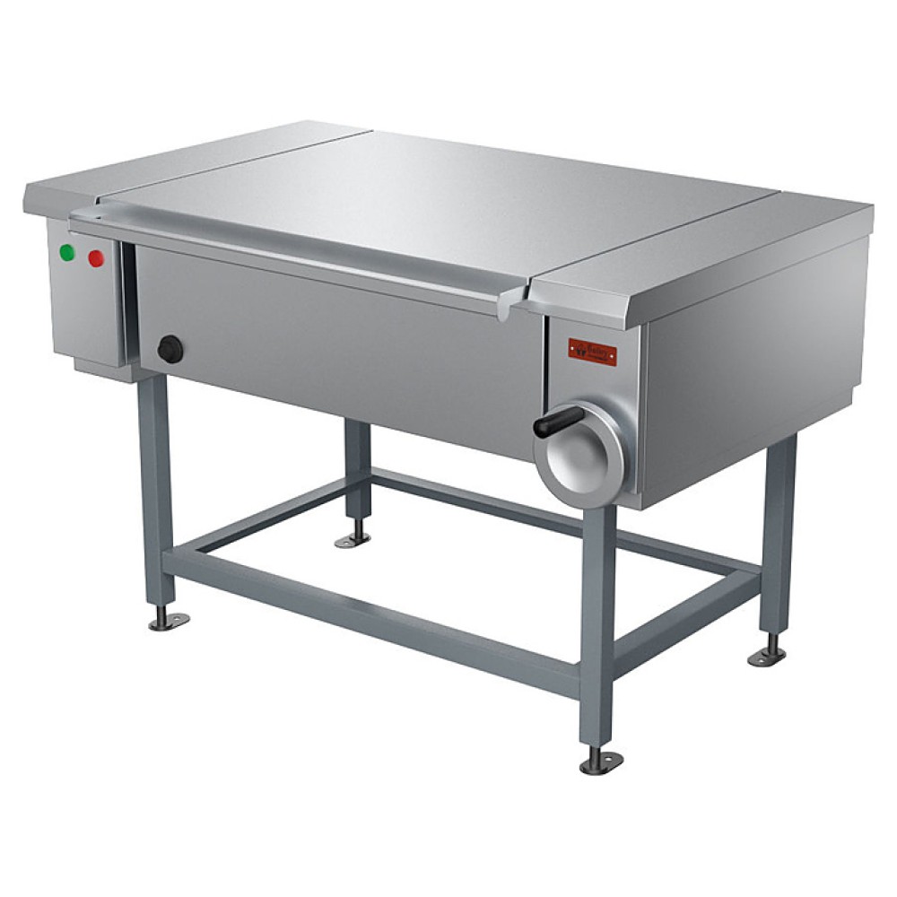 Опрокидывающаяся сковорода Проммаш СЭЧ-0,45Н используется на предприятиях общественного питания и торговли для жарения основным способом и во фритюре, для тушения, припускания, пассерования, а также для приготовления на пару мясных, рыбных, овощных блюд и кулинарных изделий. Сварной каркас выполнен из черного металла с порошковым покрытием, чаша - из чугуна, облицовки и крышка - из нержавеющей стали.