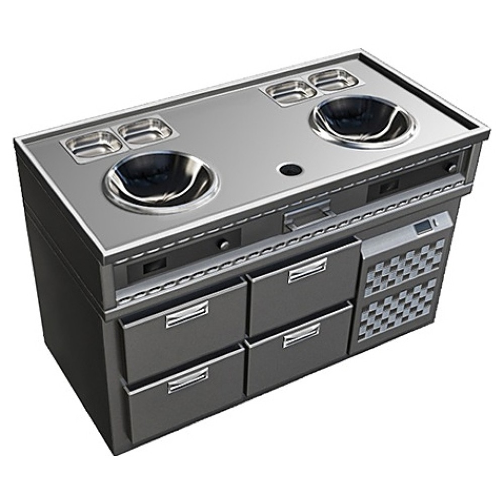 Кулинарная станция ВОК Astropit КС-ВОК-1403 предназначена для приготовления большого ассортимента блюд в гостиничном и ресторанном бизнесе, на предприятих пищевой промышленности, общественного питания и в домашних условиях. Модель оснащена 2 независимыми панелями управления с круговыми регуляторами и цифровыми дисплеями. Корпус и рабочие поверхности выполнены из нержавеющей стали.