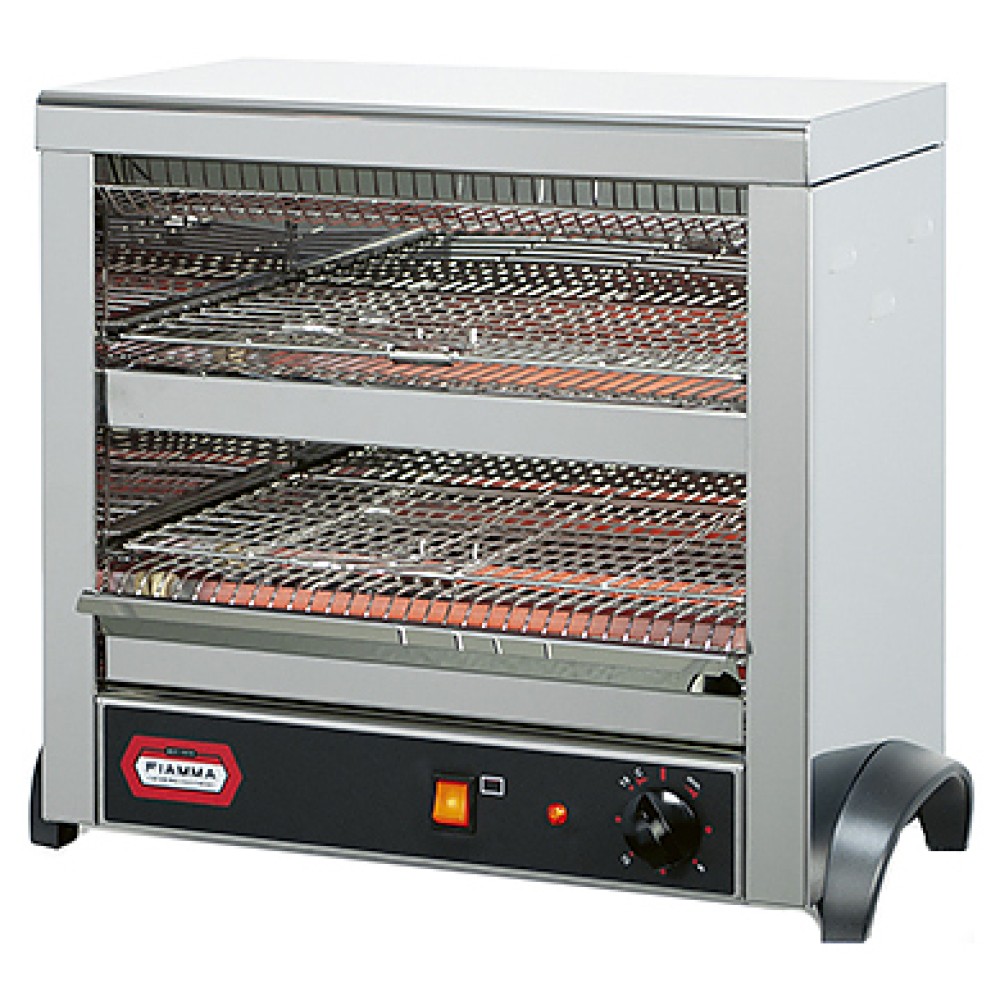 Профессиональный тостер FIAMMA TOSTI D5 используется для приготовления и разогрева тостов, бутербродов, гамбургеров и других простых блюд. Модель оснащена 2 нагревательными элементами и таймером на 15 мин. Корпус выполнен из нержавеющей стали.