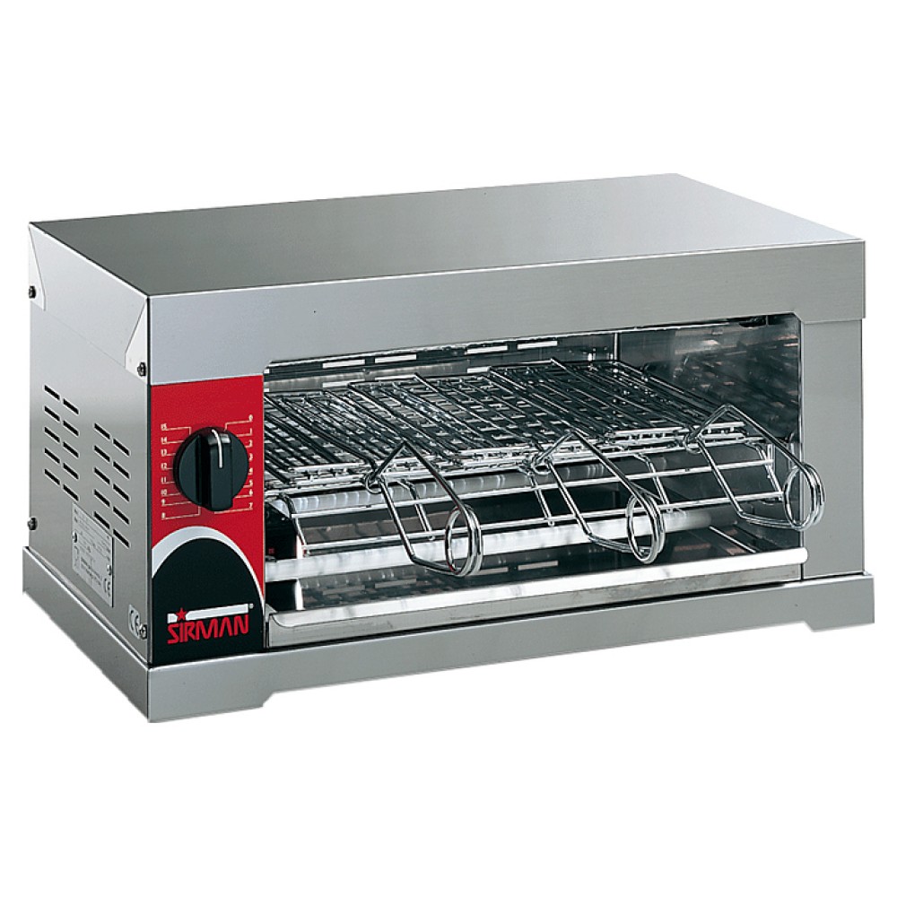 Тостер Sirman 6Q используется на предприятиях общественного питания и торговли для приготовления тостов, подогрева пиццы, полуфабрикатов и бутербродов, а также приготовления сосисок, гамбургеров, пресных лепешек "пьядина" и тостов с начинкой. Модель оснащена кварцевыми нагревательными элементами, таймером и удаляемой ванночкой для сбора остатков.