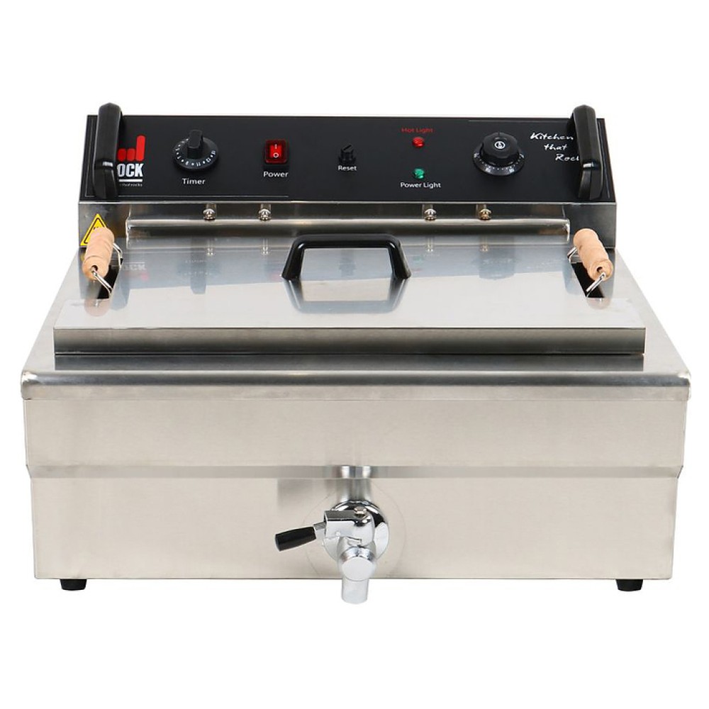 Чебуречница Rock Kitchen RK-MF48-2B используется на предприятиях общественного питания и торговли для обжарки во фритюре чебуреков, беляшей, пирожков и других продуктов. Модель оснащена 1 ванной и краном для слива масла. Корпус выполнен из нержавеющей стали.