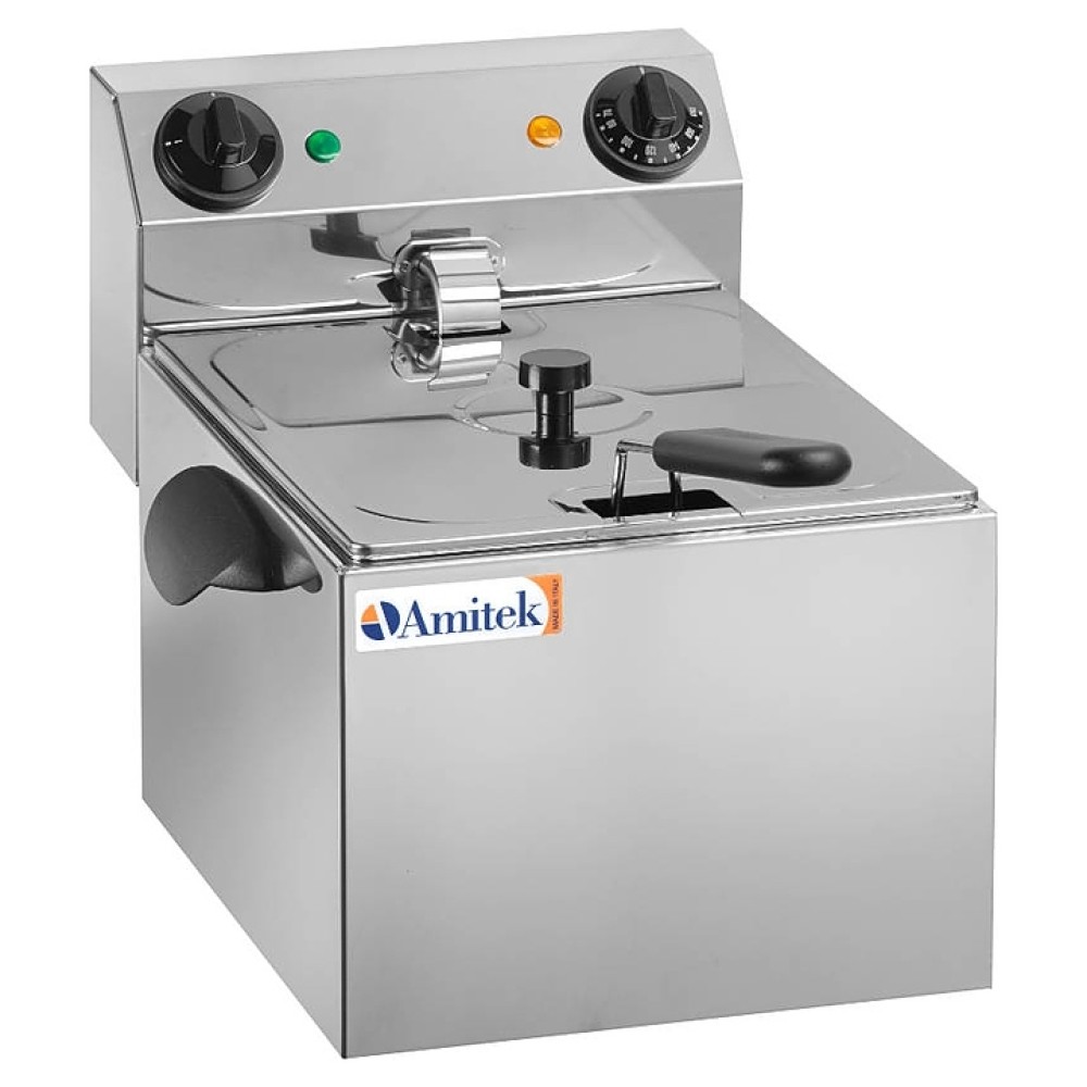 Фритюрница Amitek FE8 предназначена для приготовления продуктов в большом количестве горячего масла, используется на предприятиях общественного питания, а также гиперамаркетах. Корпус выполнен из нержавеющей стали, корзины из хромированной проволоки.