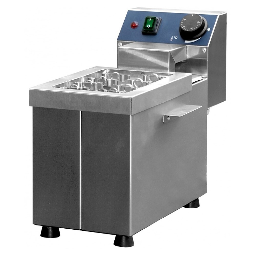 Фритюрница Новая Энергия ФЭ-Н 1,5 предназначена для приготовления сосисок в тесте в большом количестве горячего масла или жира на предприятиях общественного питания и торговли. Модель оснащена электромеханической панелью управления. Корпус выполнен из нержавеющей стали.