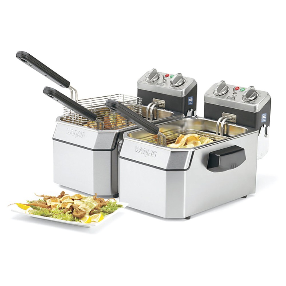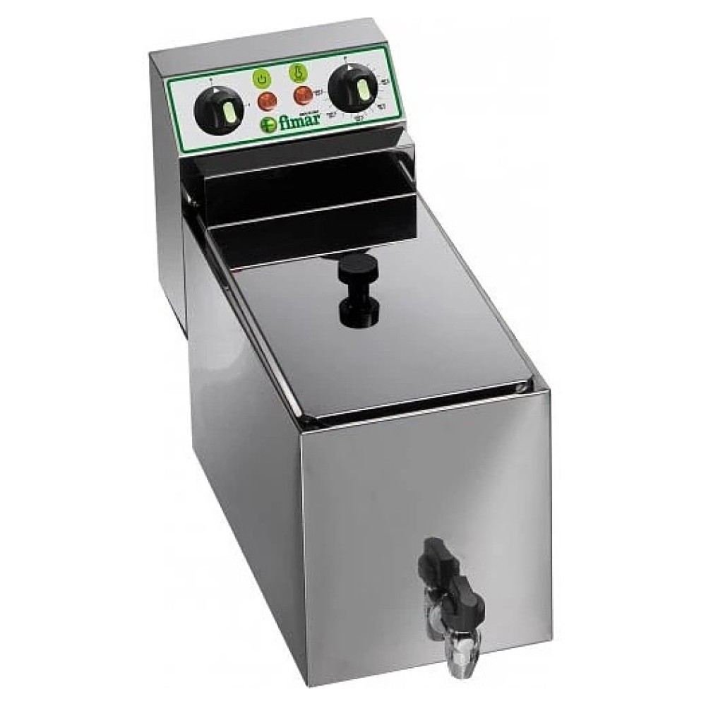 Фритюрница FIMAR FR8R предназначена для приготовления широкого спектра блюд в большом объеме масла или жира на предприятиях общественного питания и торговли. Модель оснащена регулятором температуры, предохранительным термостатом с кнопкой возврата в исходное состояние и съемными верхним блоком и ТЭНами. Корпус, ванна и крышка выполнены из нержавеющей стали, выдвижные корзины - из хромированной проволоки, ручки корзин и крышек - из термоизолирующего пластика.